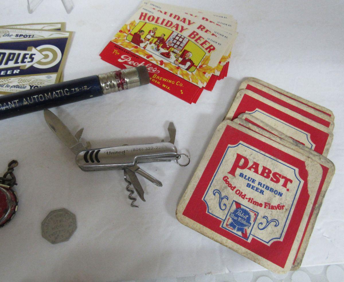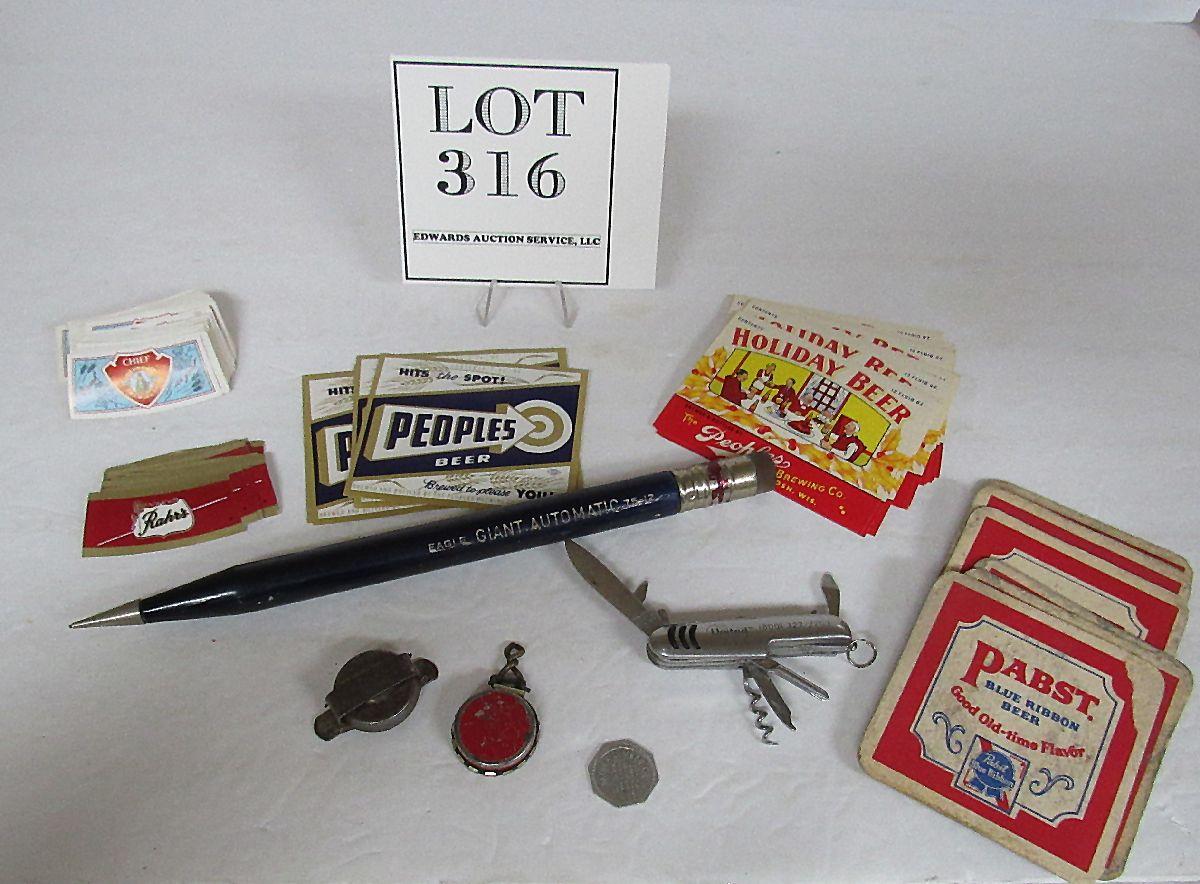Original Antique Beer Bottle Labels, Huge Mechanical Pencil, United Jack Knife, More
