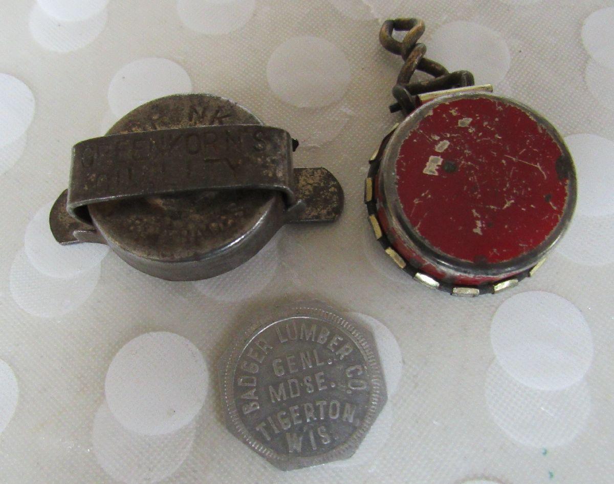 The token is Badger Lumber from Tigerton, Wi. The jack/utility knife I think is United Airlines, some wear on the writing. One bottle cap is marked Greenkorns Beverage. Rahrs, Chief Oshkosh neck labels and Peoples and Holiday Beer Bottle labels, all originals, unused. Shipping is available at shipping cost plus $5.00 handling fee on one box, $10.00 handling fee on two boxes, $15.00 handling fee on 3 boxes. Helps cover shipping materials and labor cost.