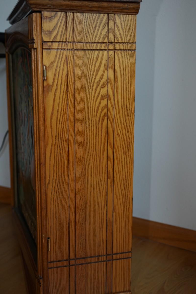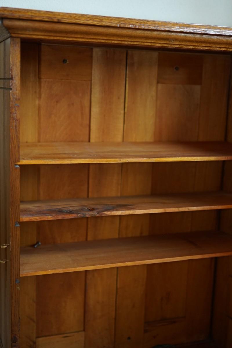 The excellent oak cabinet is original finish with patina of a warm honey oak color.
