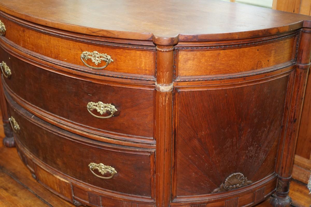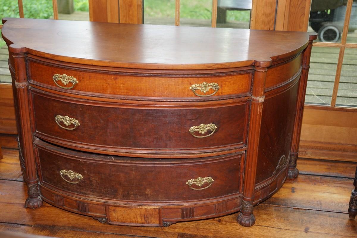 three drawer that has some tape applied on the columns but I believe it is to hold some of the veneer or carving"