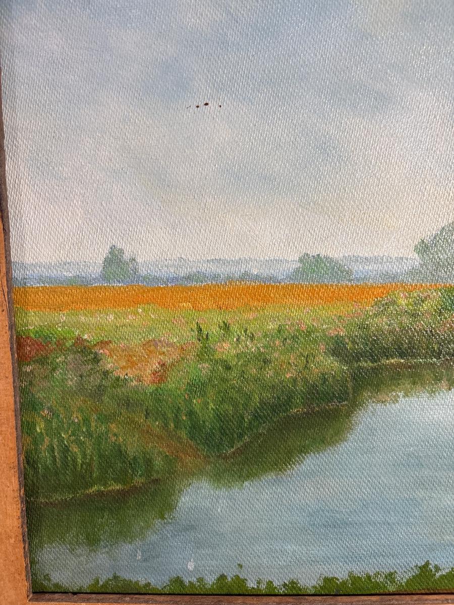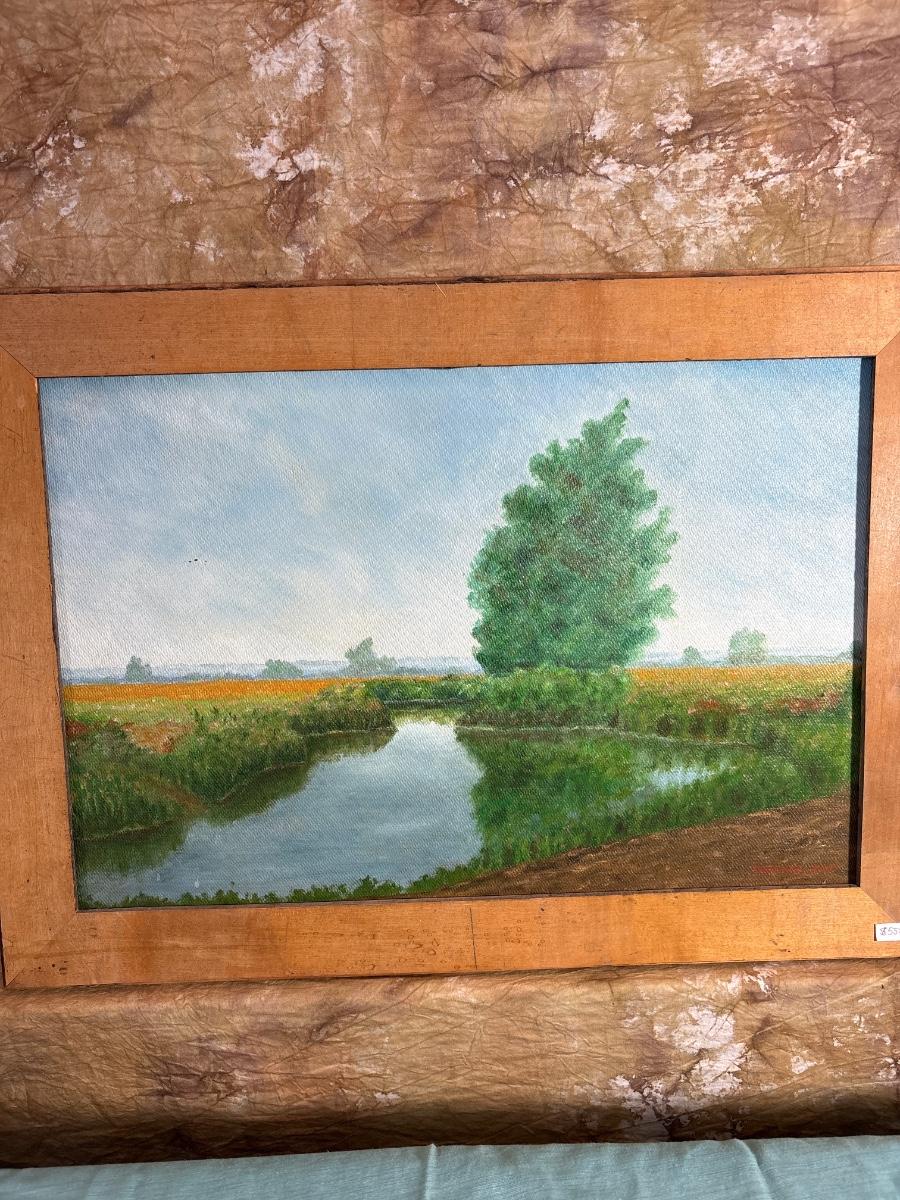 Oil on masonite by Mary Weaver number 49 dated December 2010. Frame measures 28” x 20 1/2”.