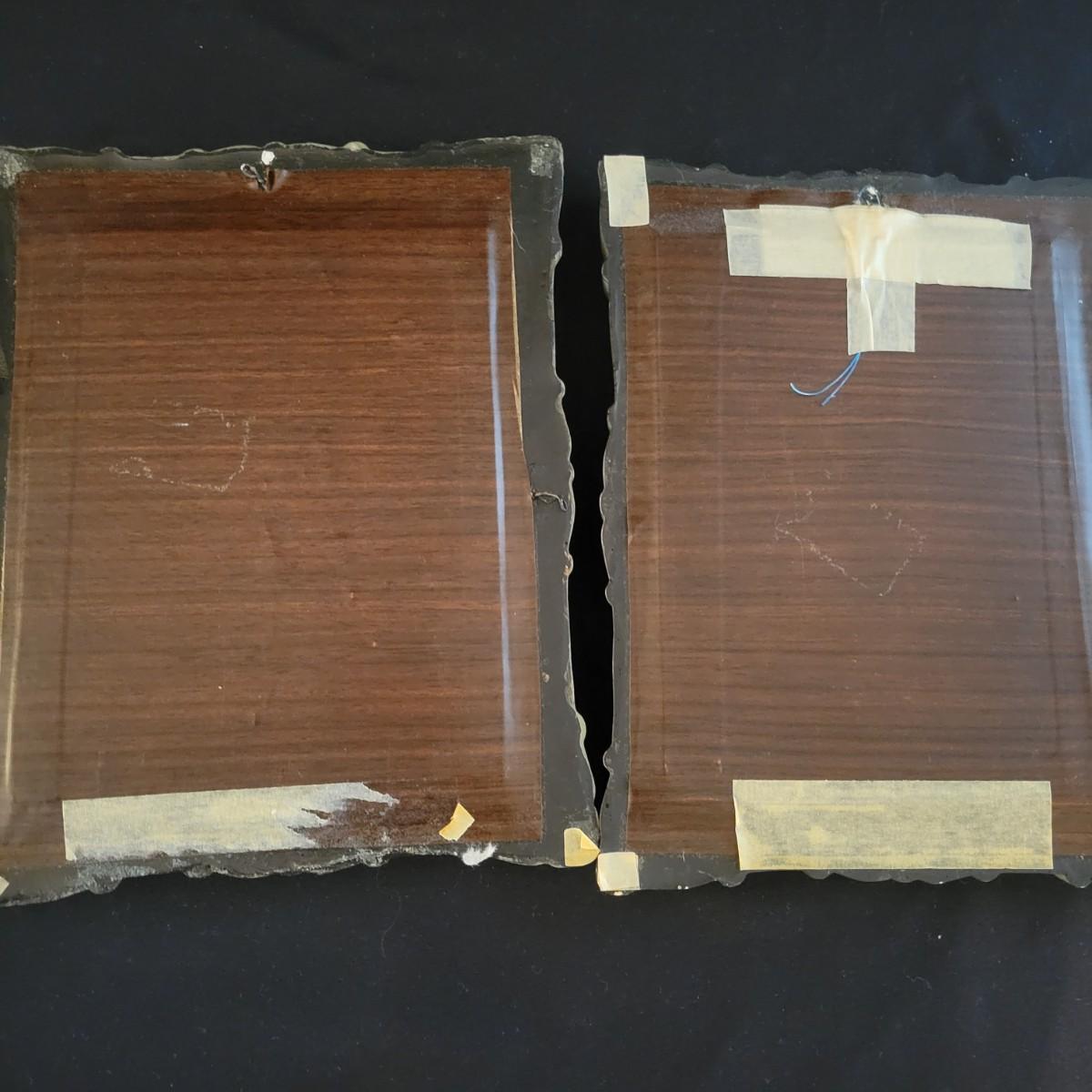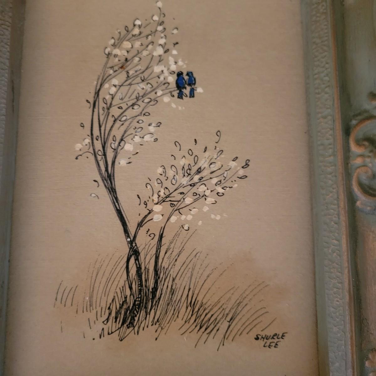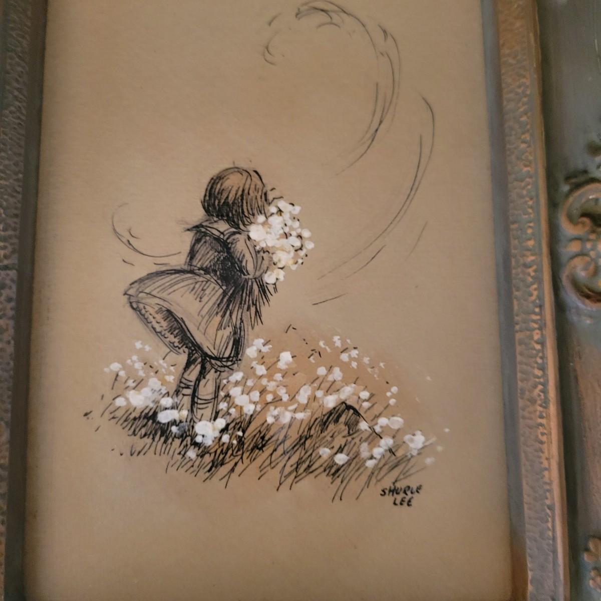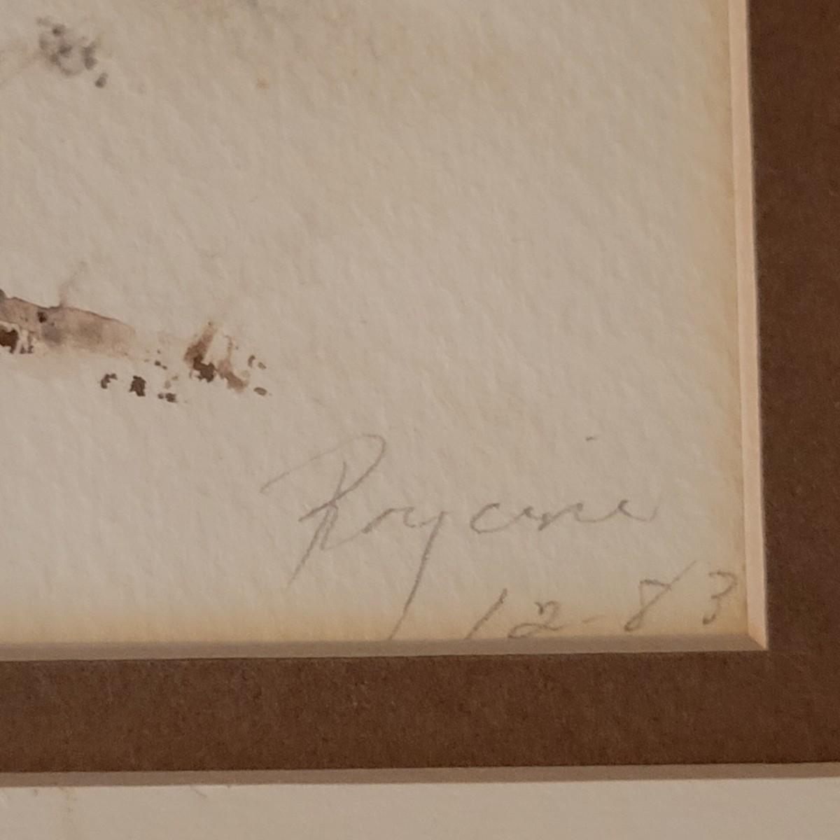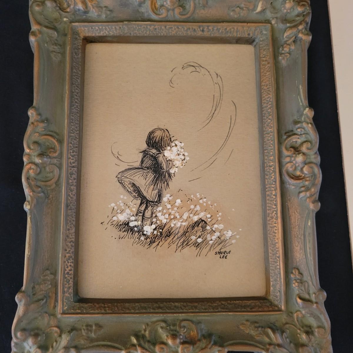 Three original pieces of art that have no damage. The framed pieces are original pen and watercolors that are framed in a plaster molded frame with a gold finish with antiquing that measure approximately 7" x 1" x 9"H. One frame does have some minor damage. The other piece is an original watercolor that is double matted. The artists name is indecipherable and shows it was painted in December of 83. Shipping available