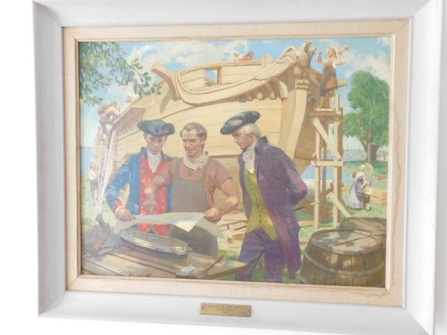Original Art Framed and Signed 'Building the Coast Guard Cutter Eagle' 1788