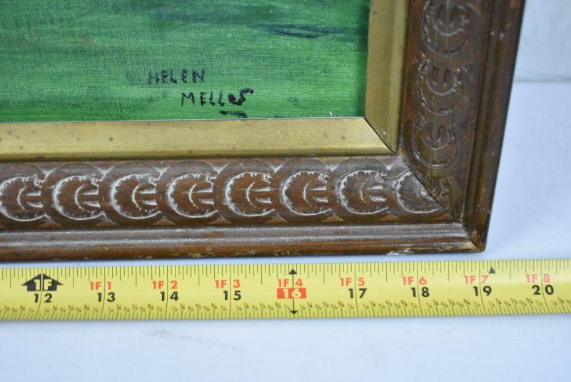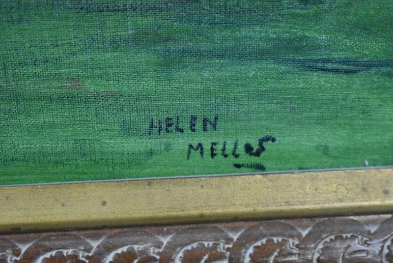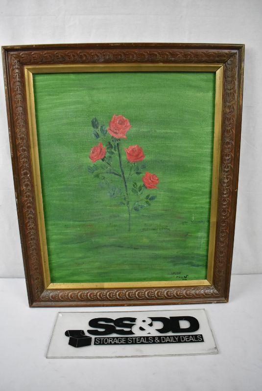 Original Art on Canvas by Helen Mellos, Red Roses on Green Background, Framed