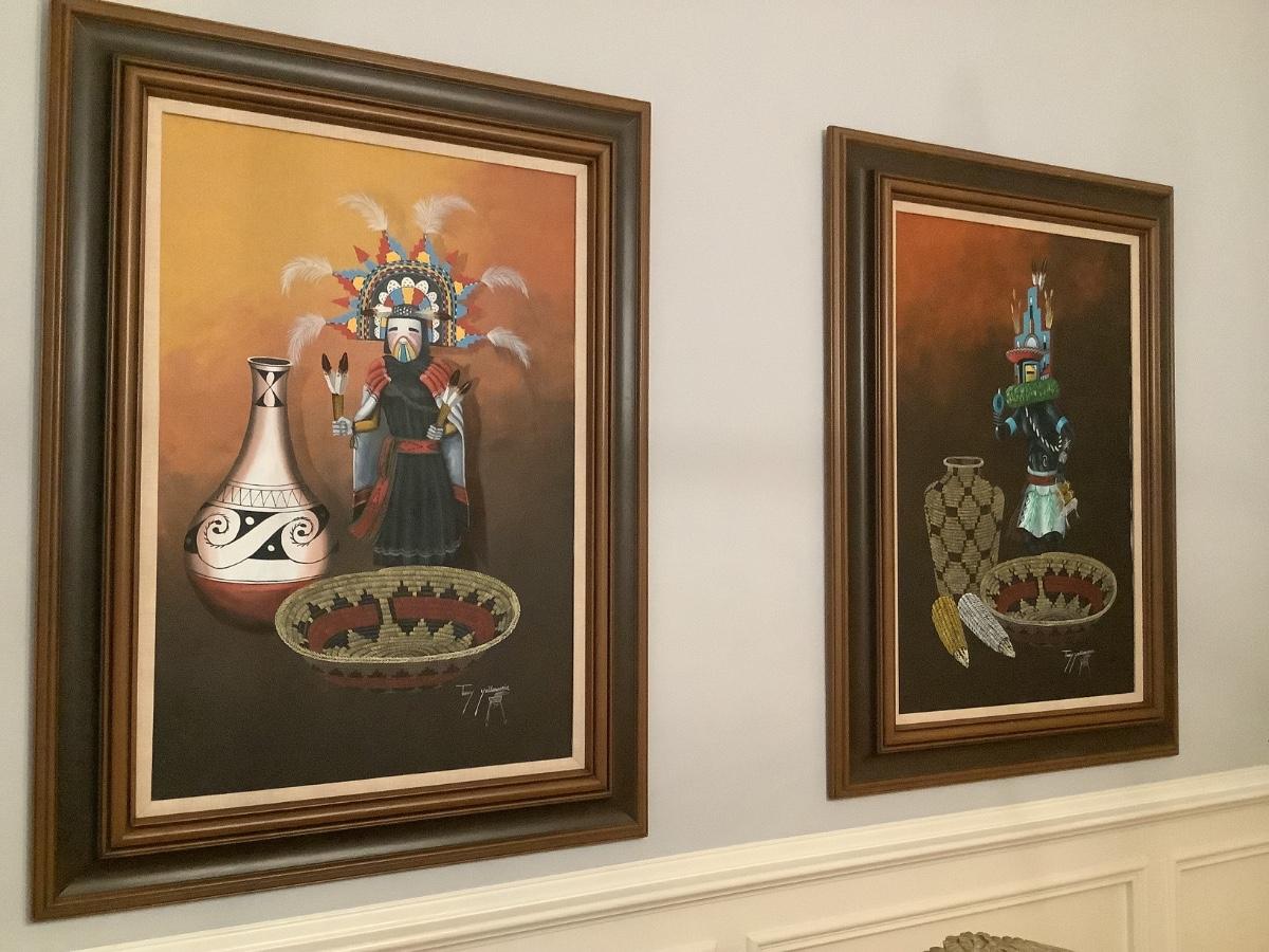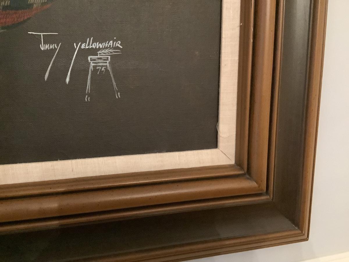 Original Artwork from Jimmy Yellowhair signed 1975 46”x34” framed -both pieces of art