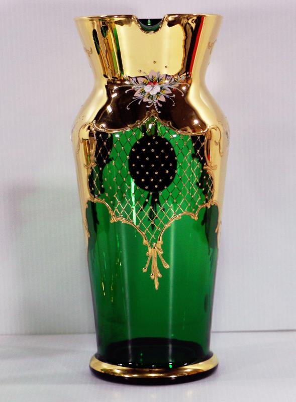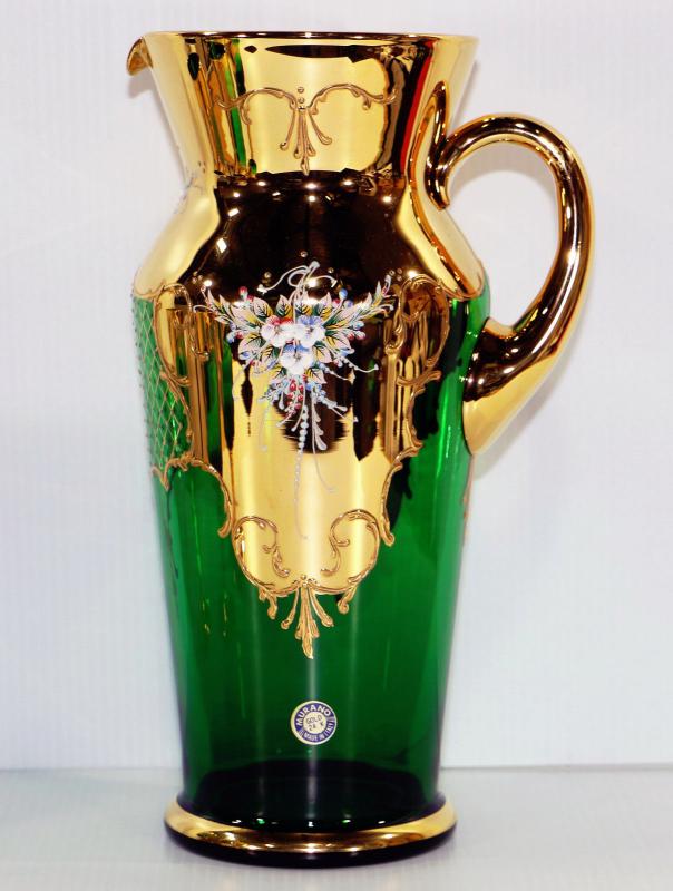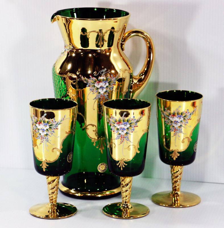 Original Barbini MURANO 24K Gold Green Pitcher+Wine Glasses Italian Venetian