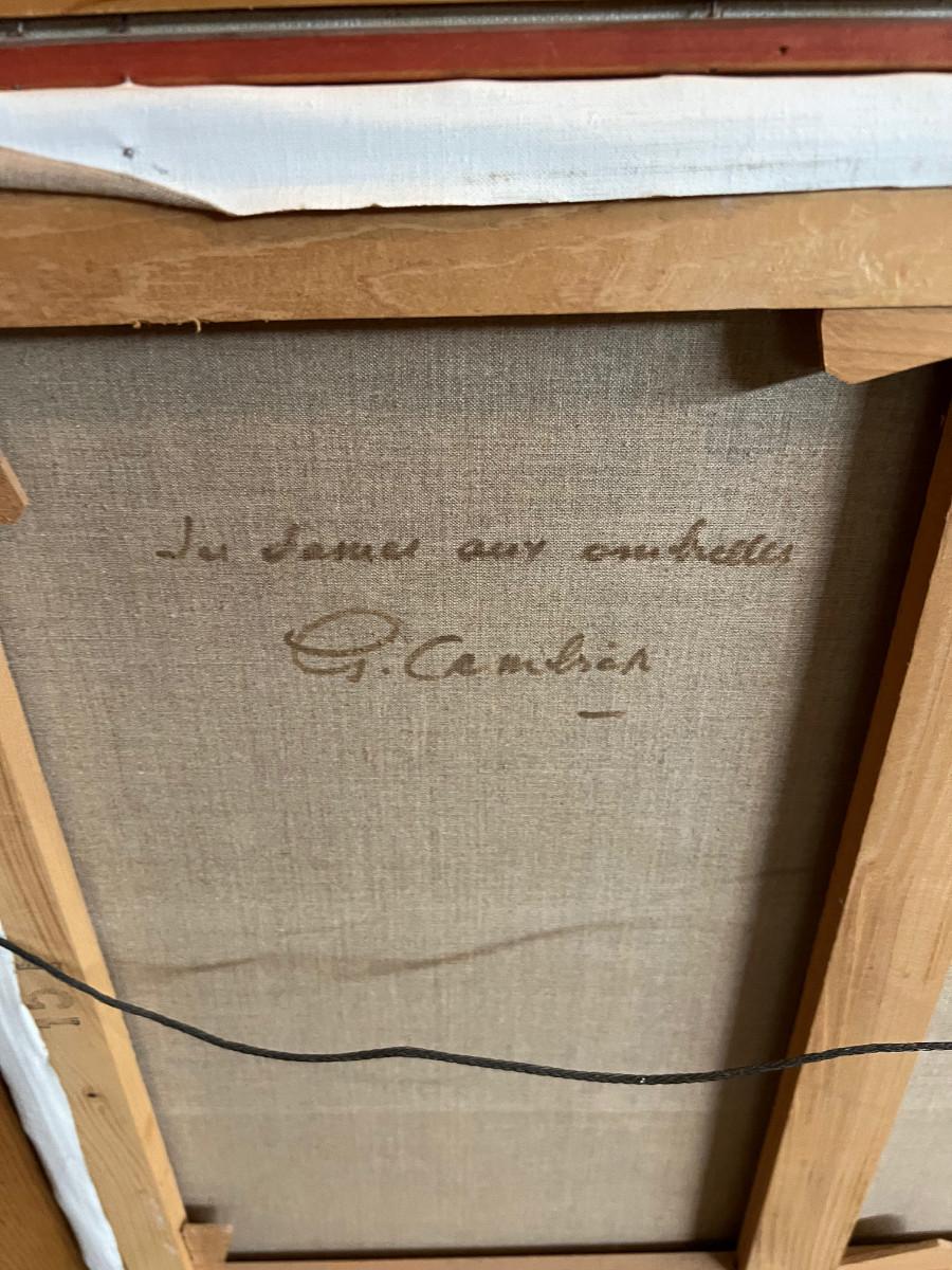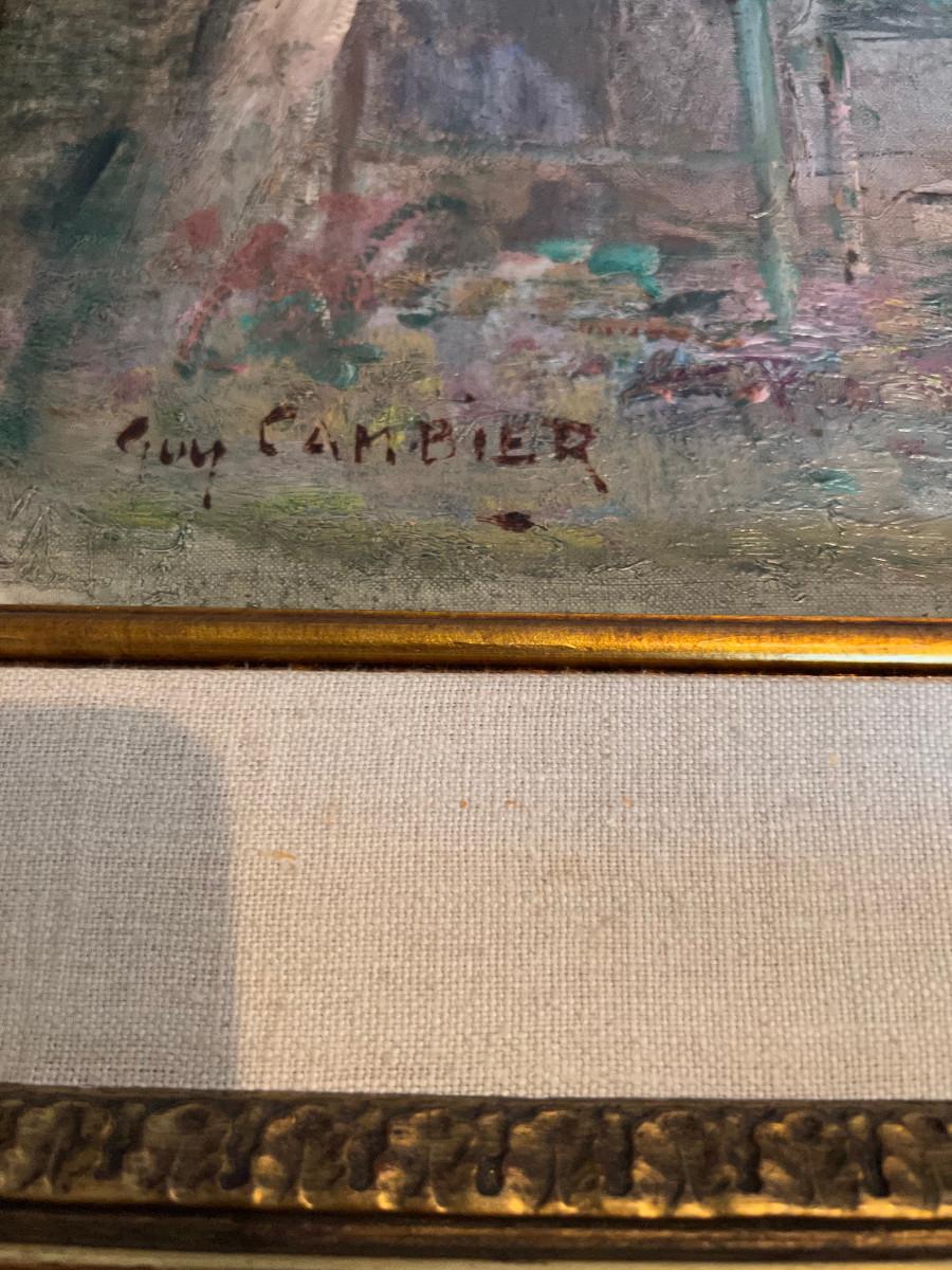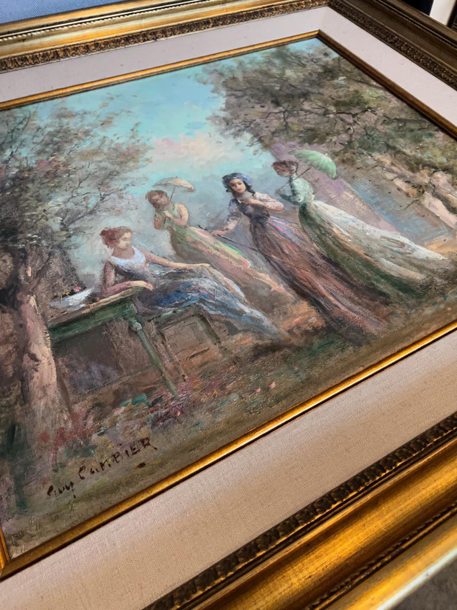 Original By Guy Cambier Women in Spring with Umbrellas In the Garden