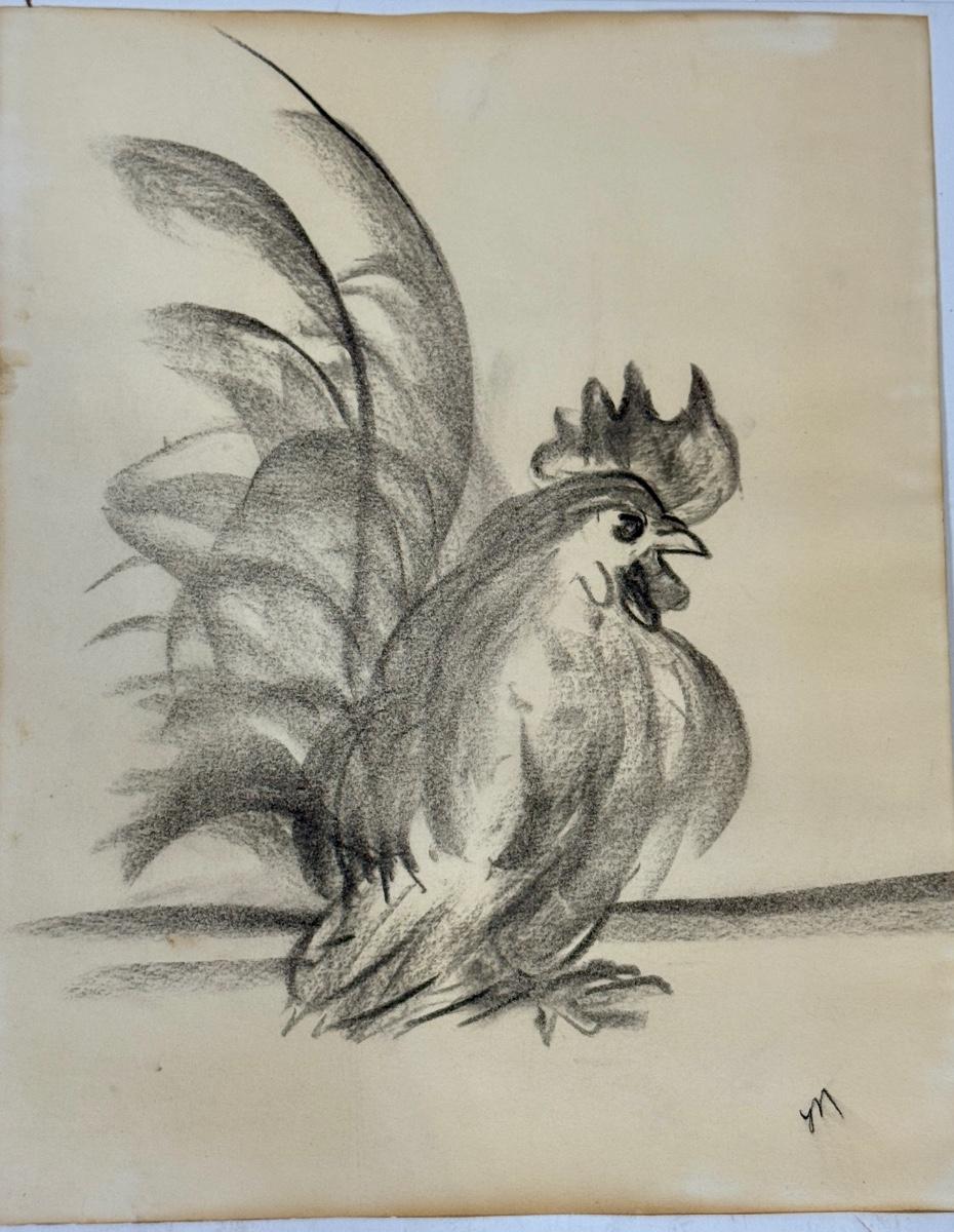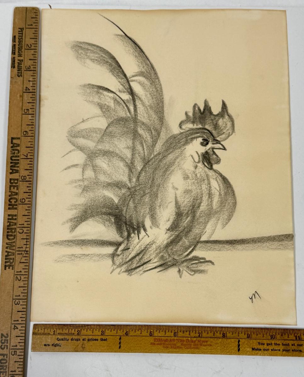 Original Charcoal or Pastel Drawing of a Rooster drawn on Paper signed M