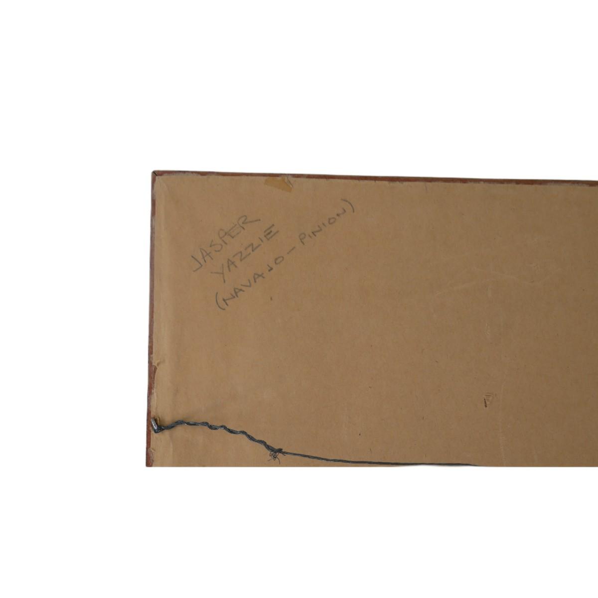 Original sketched in pencil artwork of young child's face by Jasper Yazzie. Signed "JSPR" on front and "Jasper Yazzie Navajo-Pinon" on back. Framed and matted. Art is in excellent condition! Frame has wear. Artwork measures L 8" x H 8". Frame measures L 13.5" x H 13.5" x D 0.5". Weight is 1 lb 14 oz. (A35)