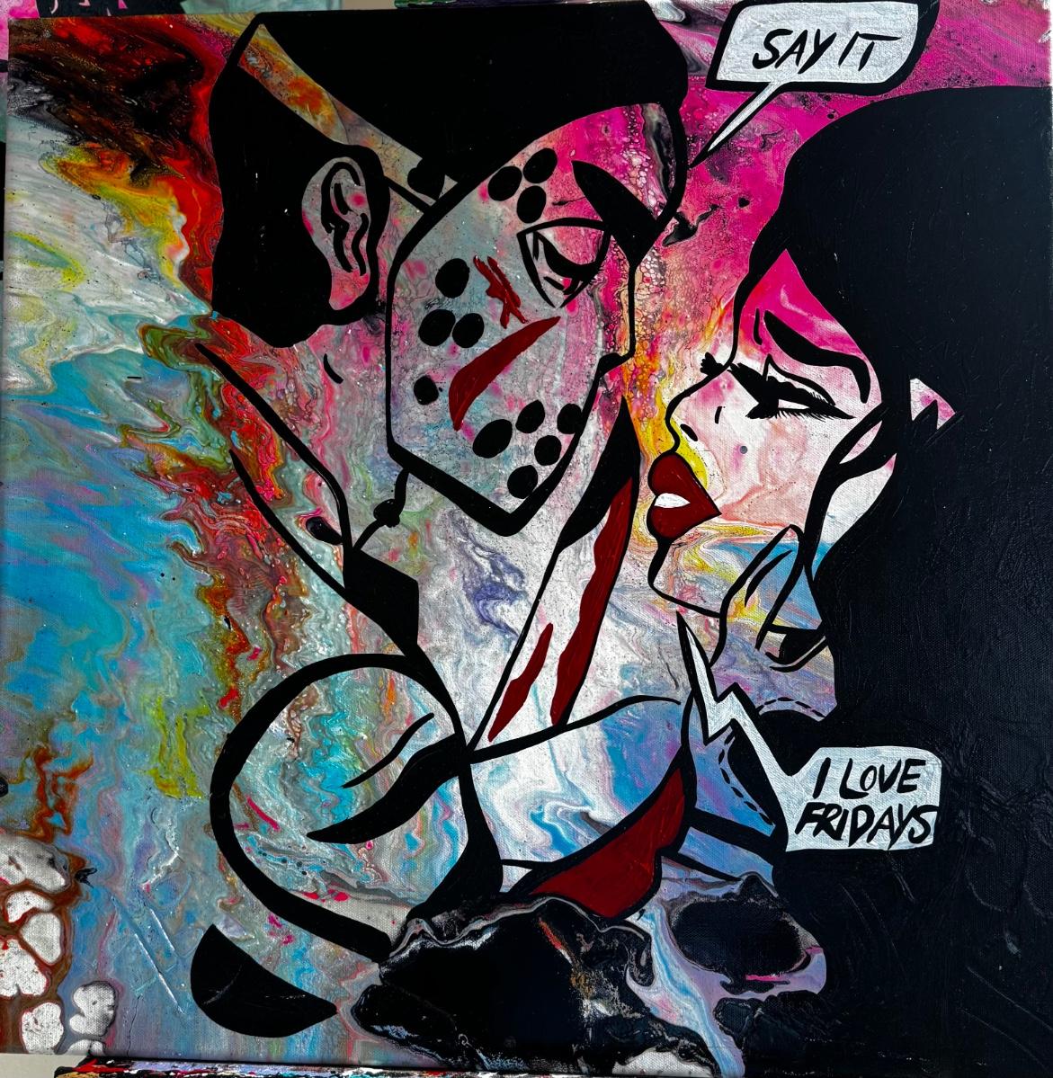 Features stylized figures and graphic elements rendered in a contemporary pop art composition.