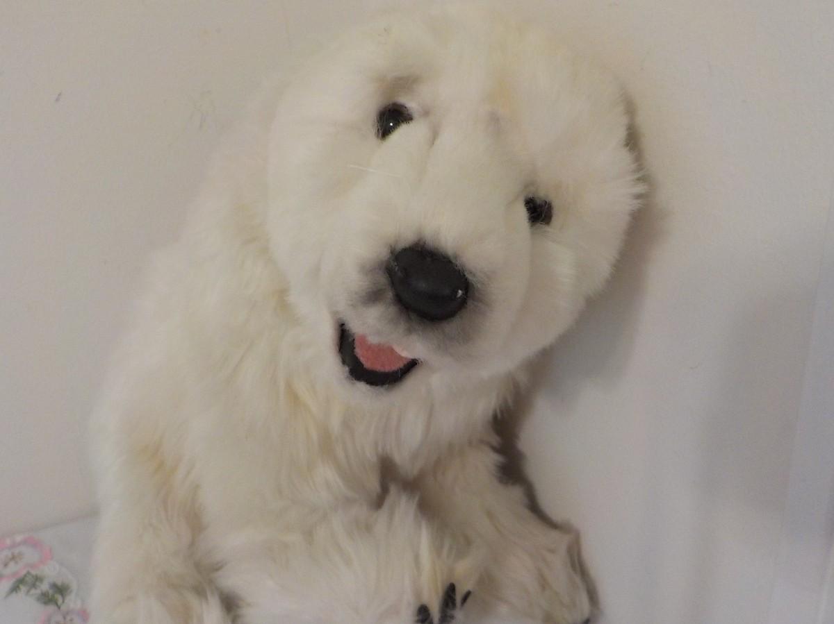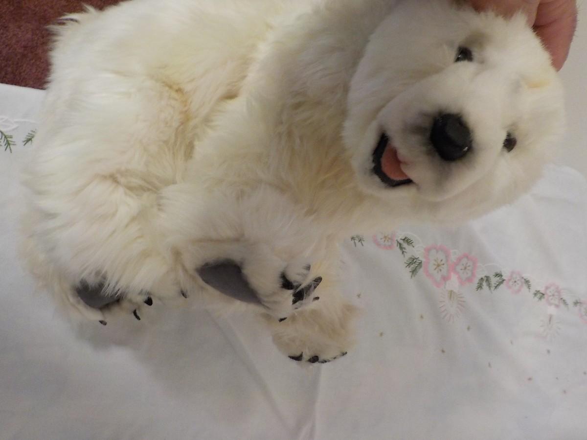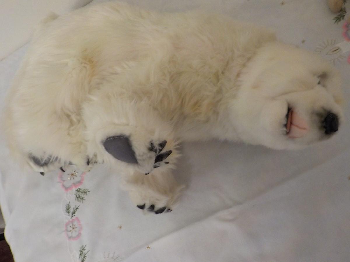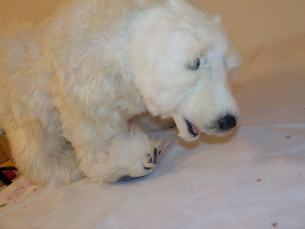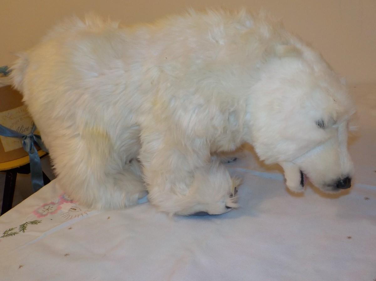 This guy is 22 inches in length and 10 in. high with stunningly soft and white fur..