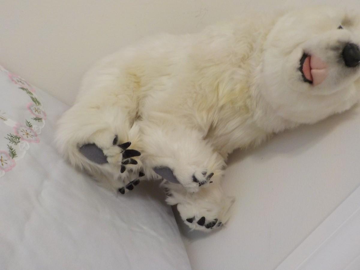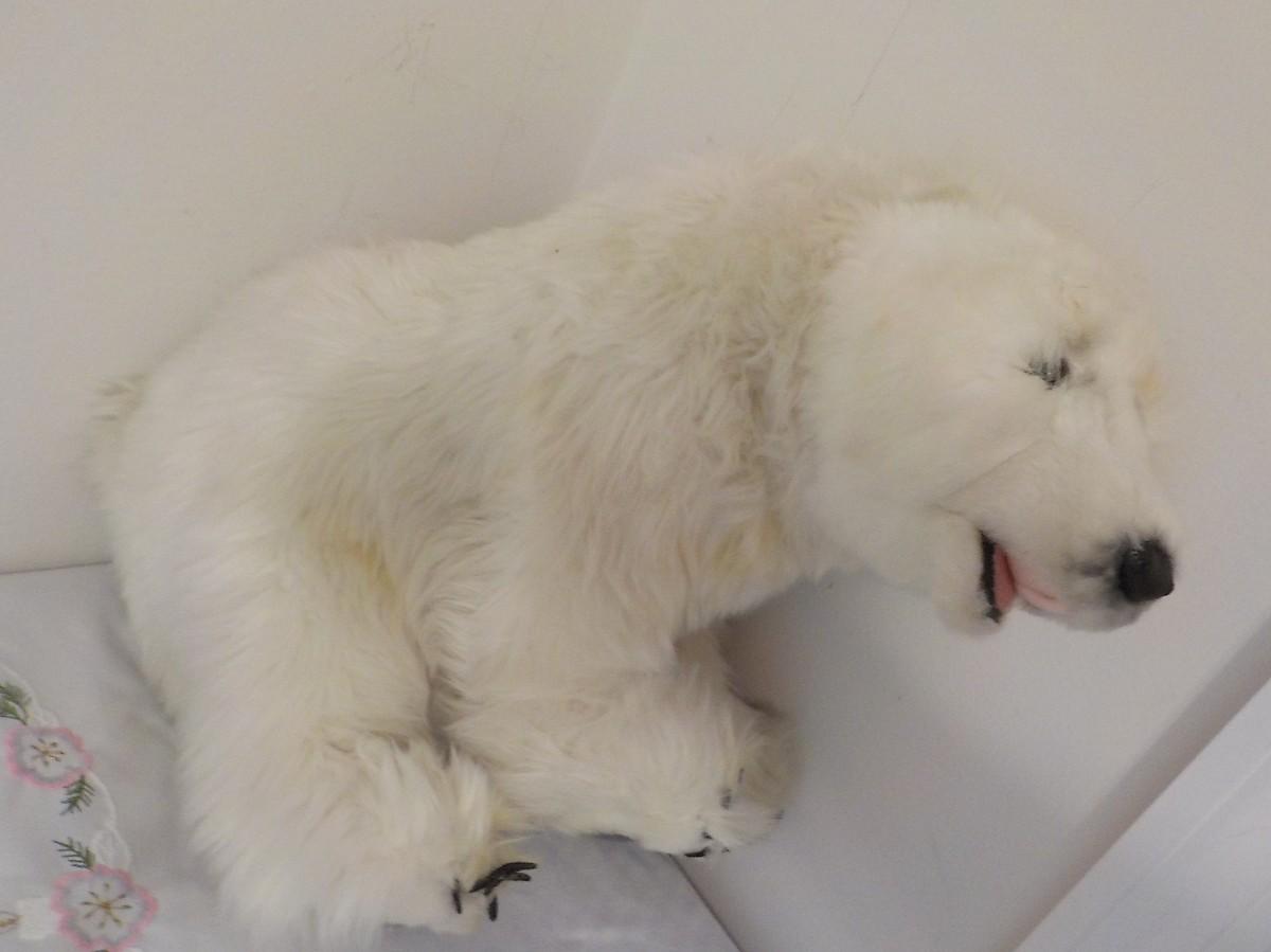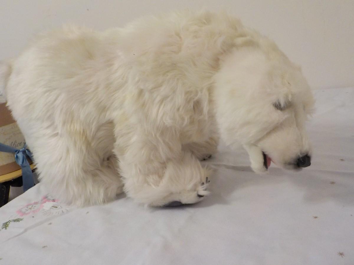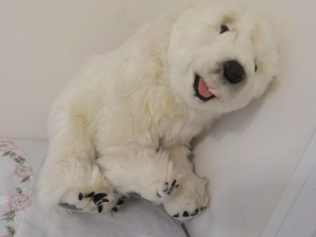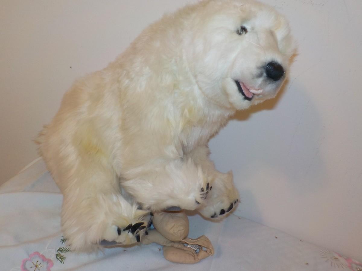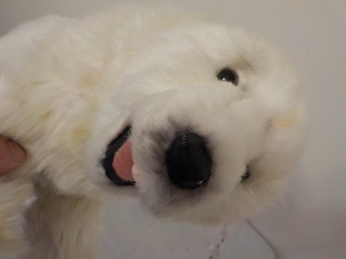This guy is 22 inches in length and 10 in. high with stunningly soft and white fur..