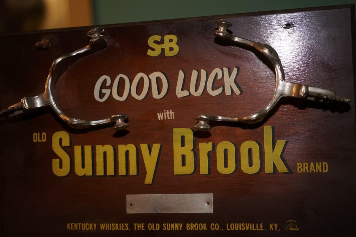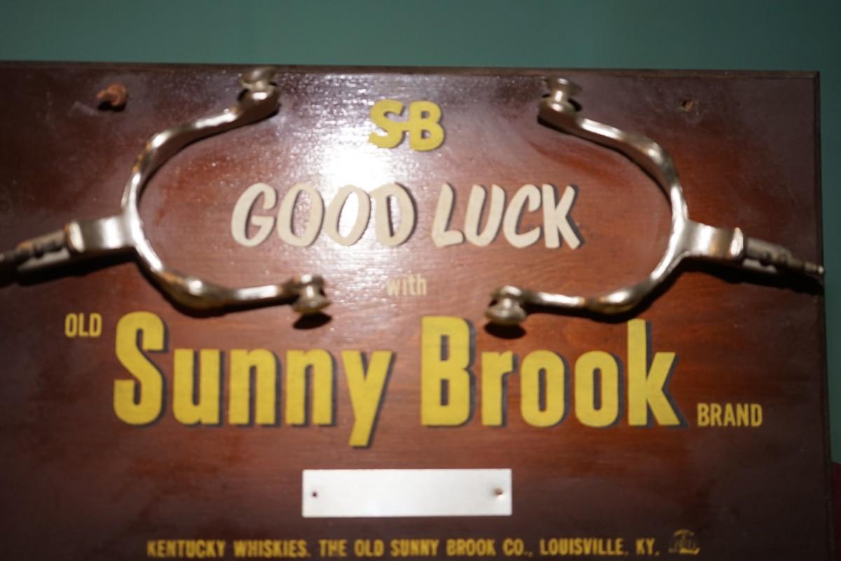 ORIGINAL DIMENSIONAL "SUNNY BROOK" KENTUCKY WHISKEY SIGN/W METAL SPURS