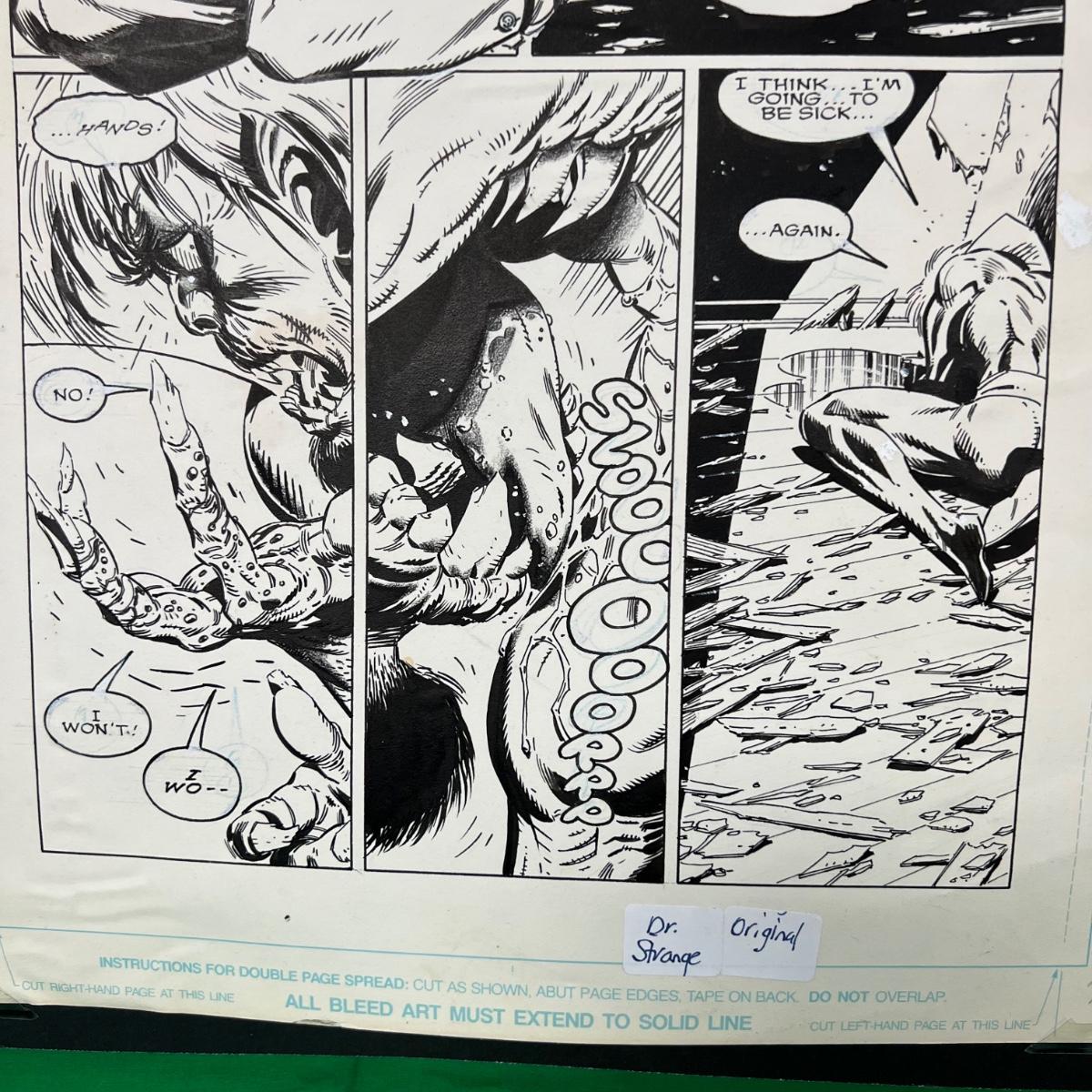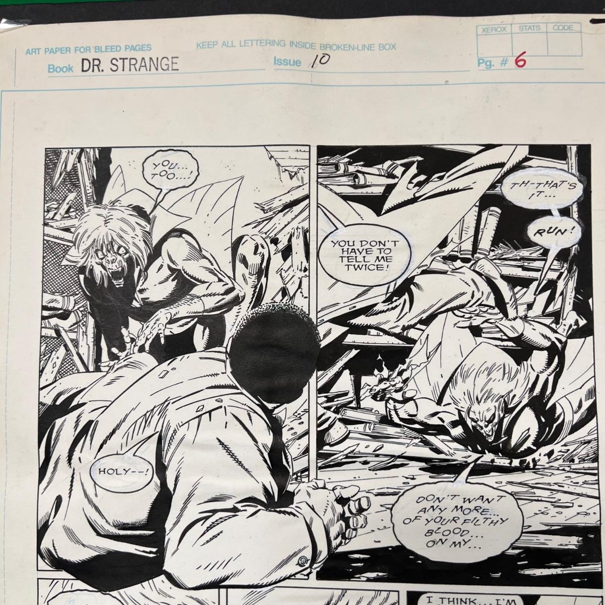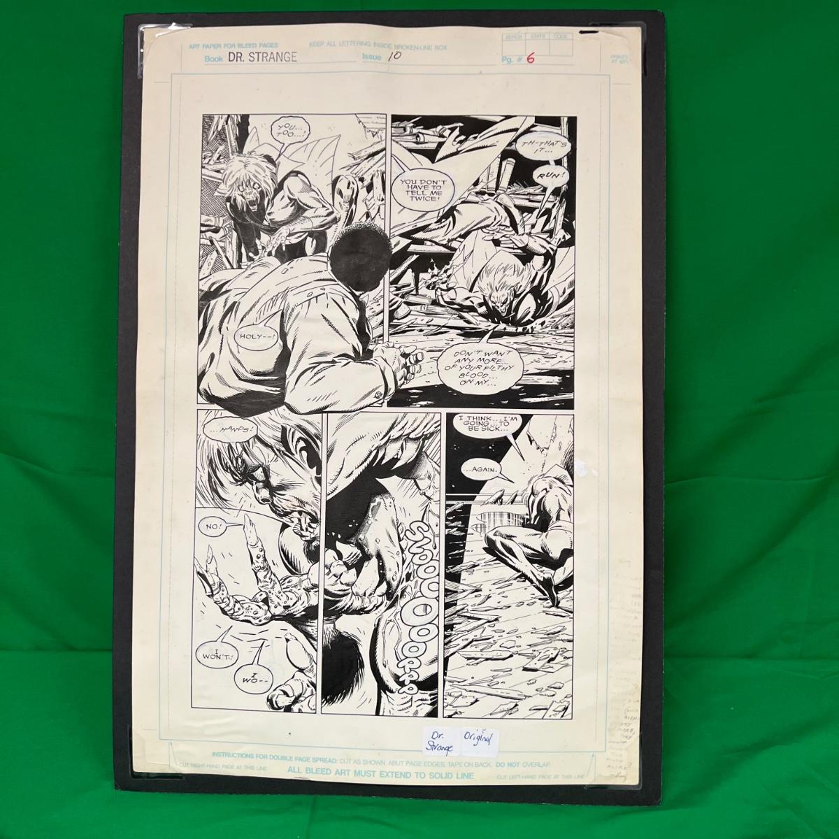 Original page 6 issue 10 artwork for Dr. Strange by Butch Guice (unsigned). Art measures 13.5” x 20”H. Items are sold as-is. No returns or refunds. Please bid accordingly
