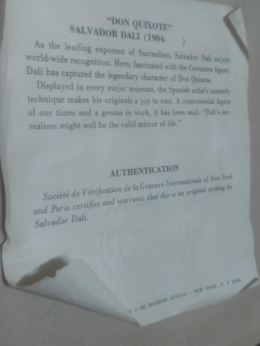 Original Etching of 'Don Quixote' by Salvador Dali with Authentication