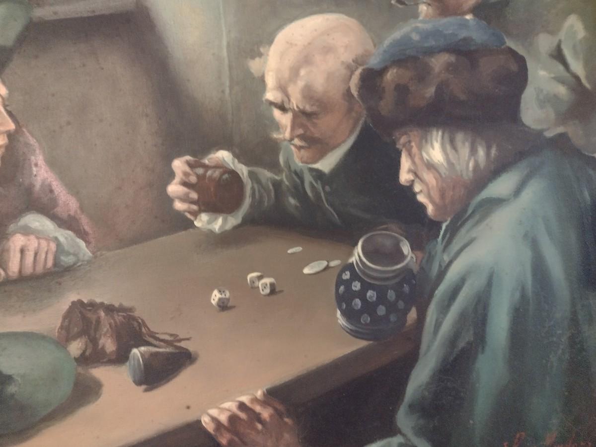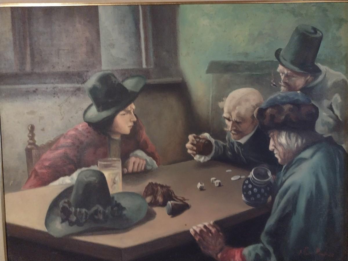 Original Framed Art on Canvas Game of Chance E. Perez Mendoza