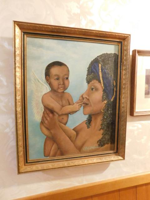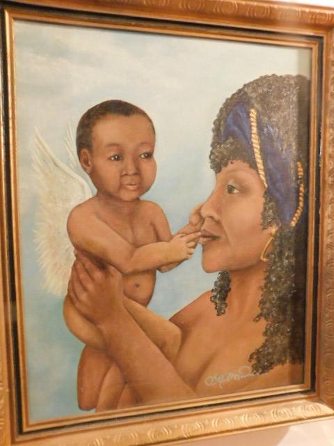Original Framed Art Signed by Artist Winged Child and Mother 19"x23"