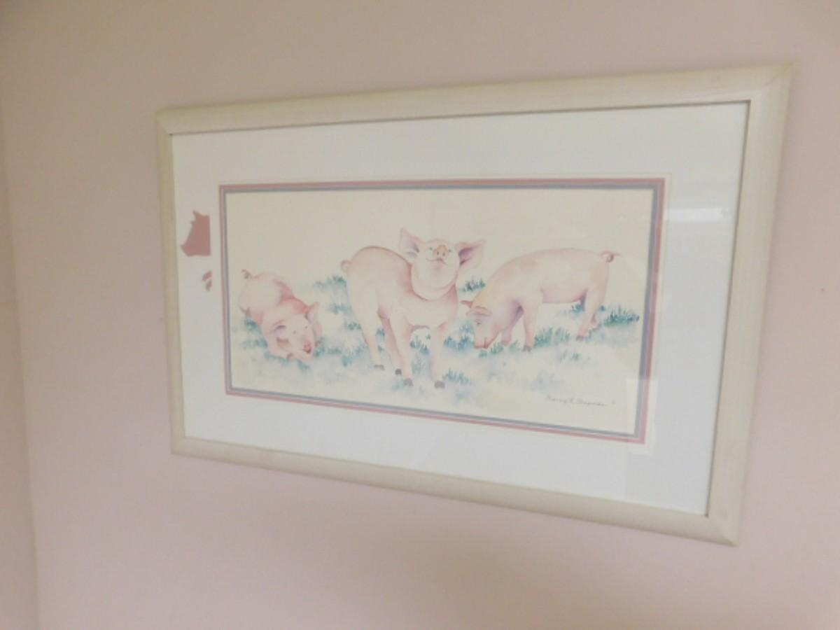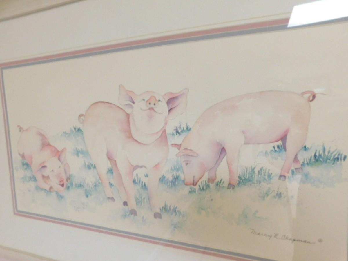 Original Framed Art Watercolor 'Pigs' by Marcy R. Chapman Shipping by third party such as UPS Store or Frontier Packing. Auction house will not personally ship. We will ensure item gets to the shipper of your choice.