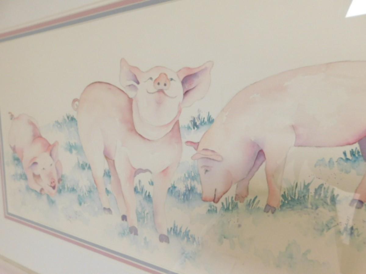 Original Framed Art Watercolor 'Pigs' by Marcy R. Chapman
