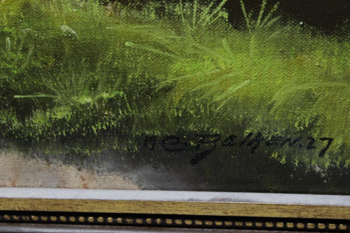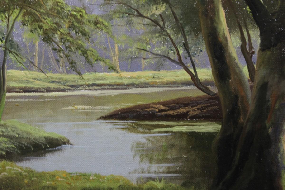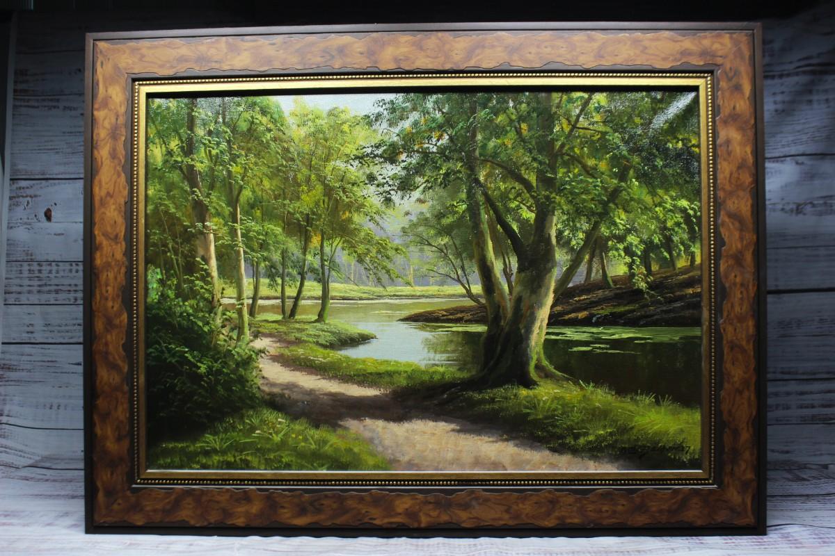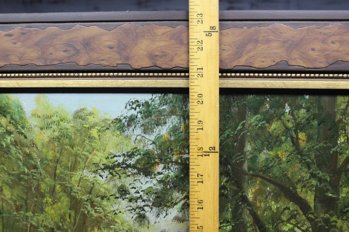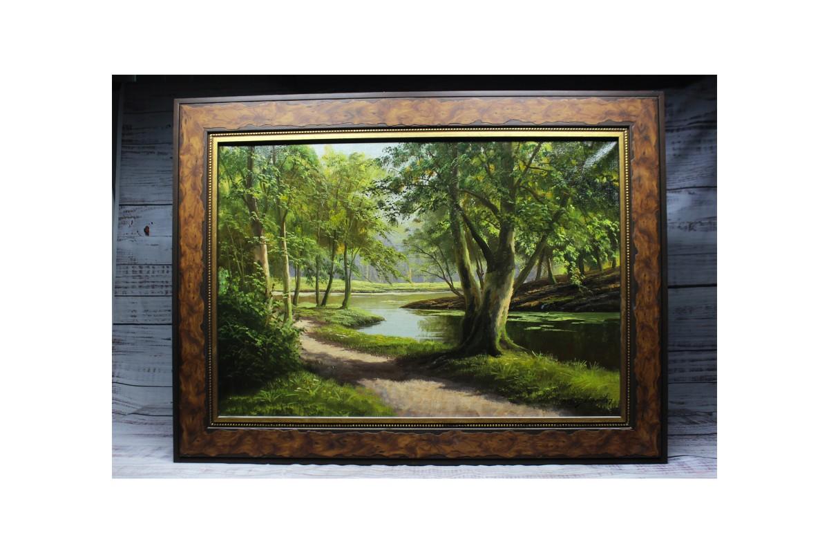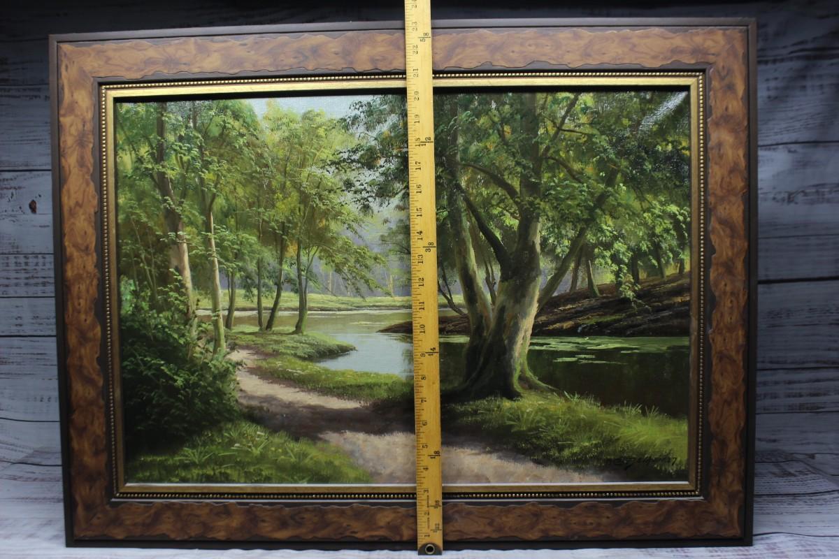 Original Framed Canvas Oil Painting of Green Forest Scenery