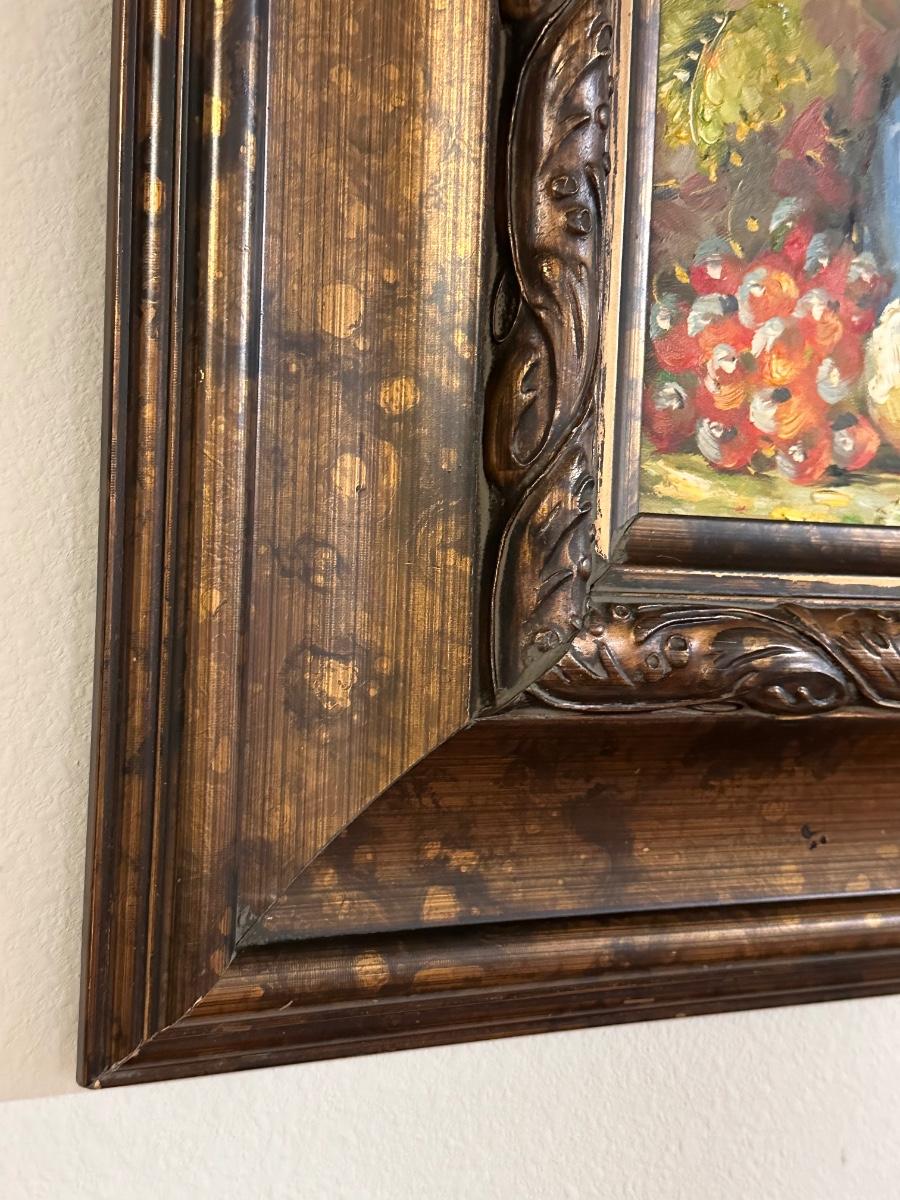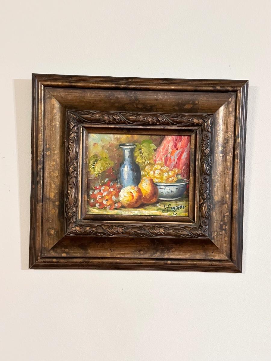 Overall frame is 20” x 18”. The canvas painting is 8” x 10”