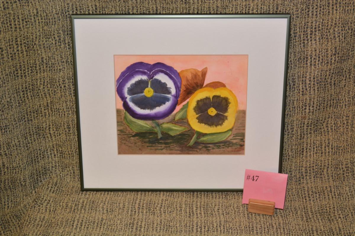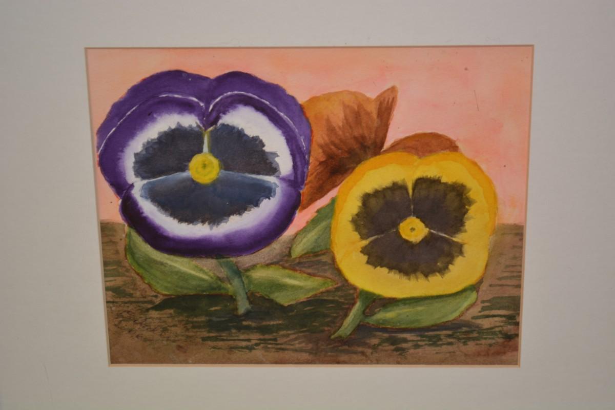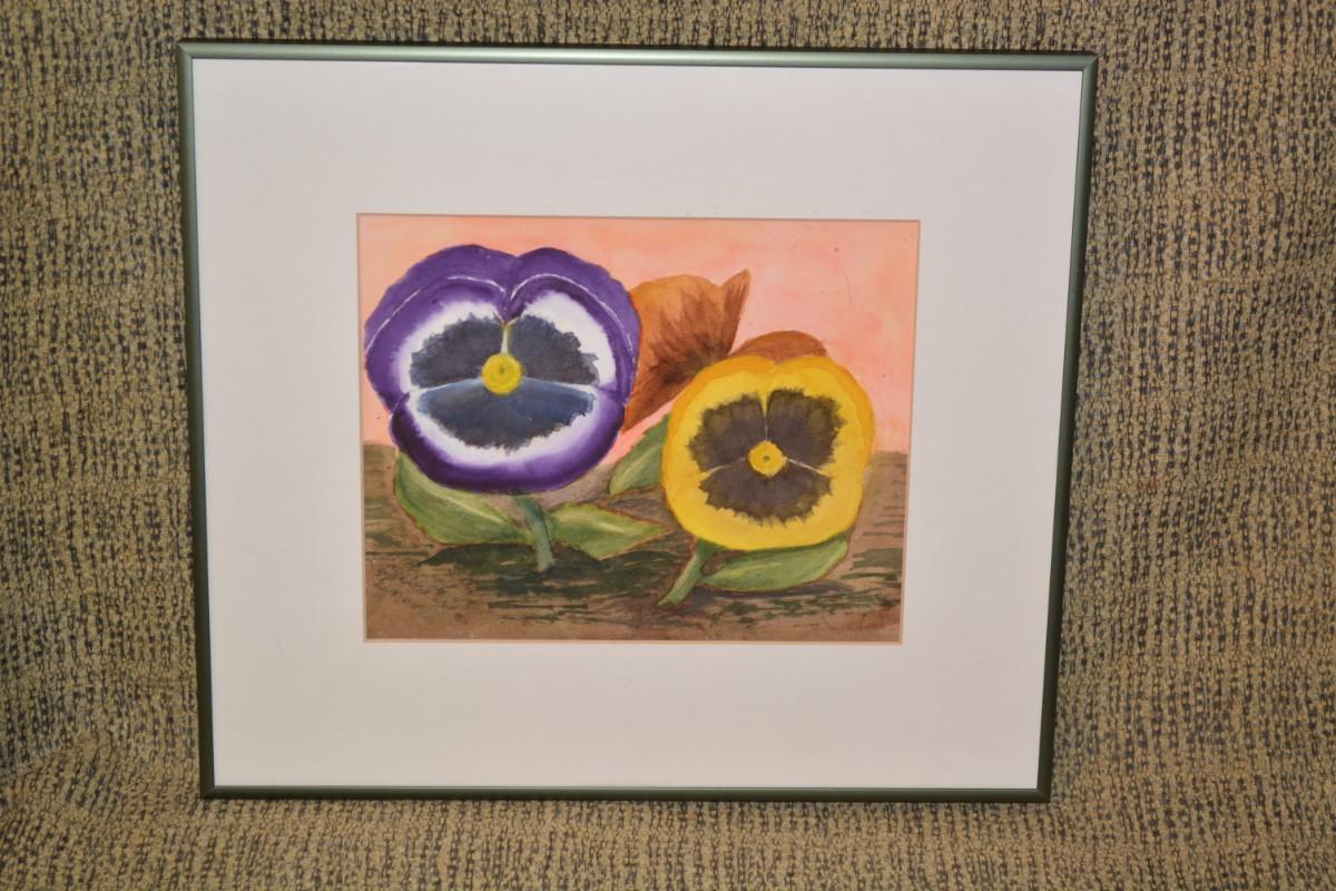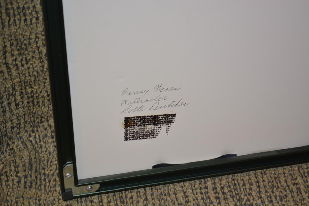Original Framed & Matted Watercolor Pansy Faces by Lotte D.