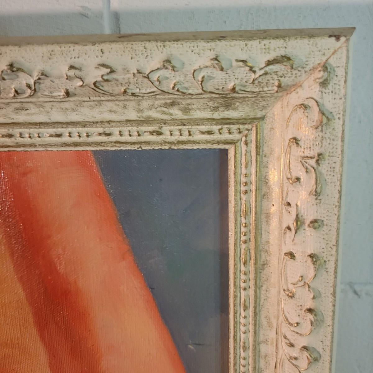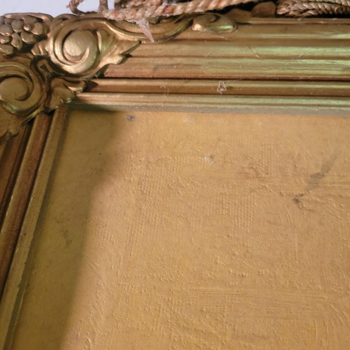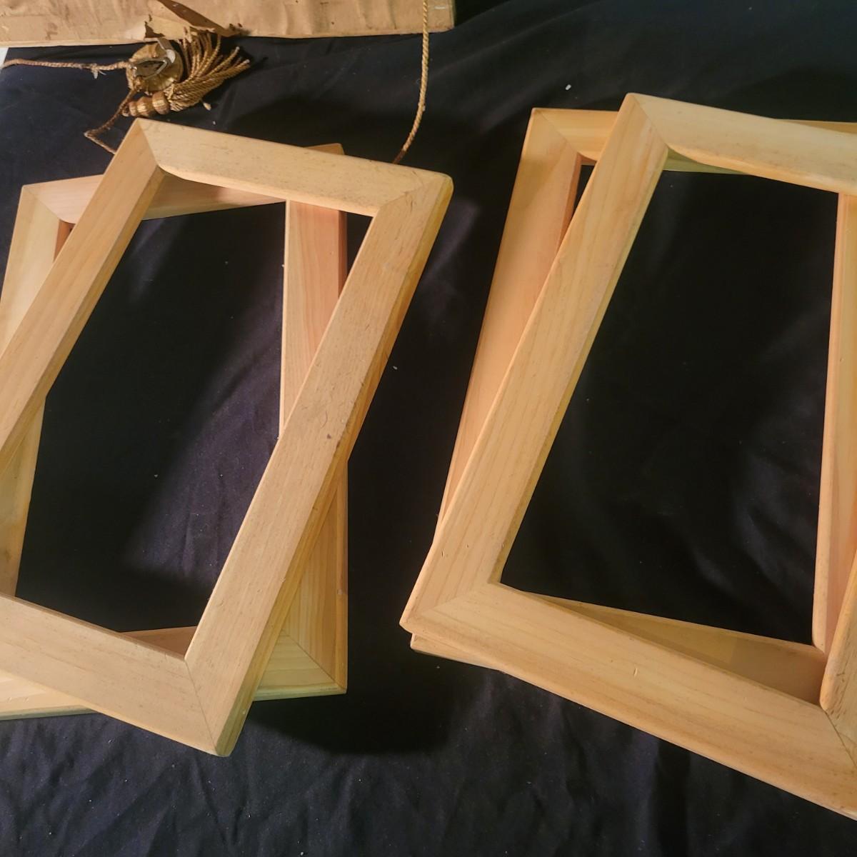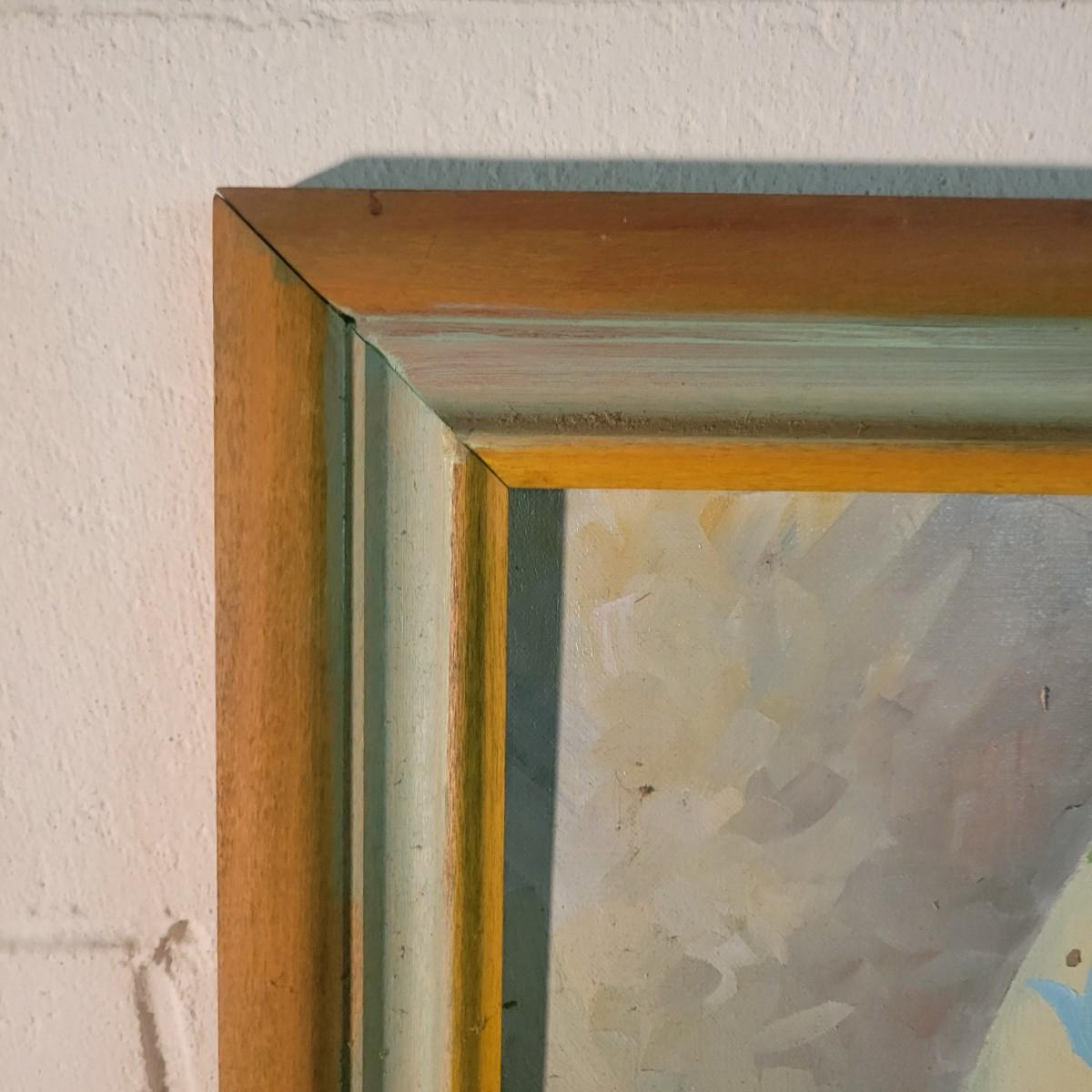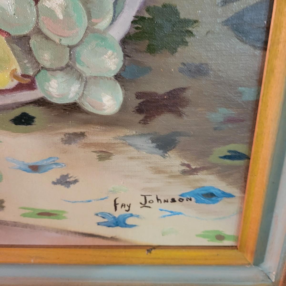 This is a lot of 2 framed original oil paintings, a framed print, four unstained wood, and two stained wood frames in good condition. The oil paintings are of fruit and vases with wooden frames. One is white and ornate, the other is gold with a blue stripe in it. These measure approximately 22" x 28" x 2". The floral piece is a print mounted on dense board with a coating to imitate an original. Frame is wood with ornate corners and does show some damage. Also included is four raw wood frames measuring approximately 11" x 17" x 1". Additionally, there are two stained wooden frames. Shipping available. Shipping Art can be costly please call UPS store at 828-252-6930 for quote