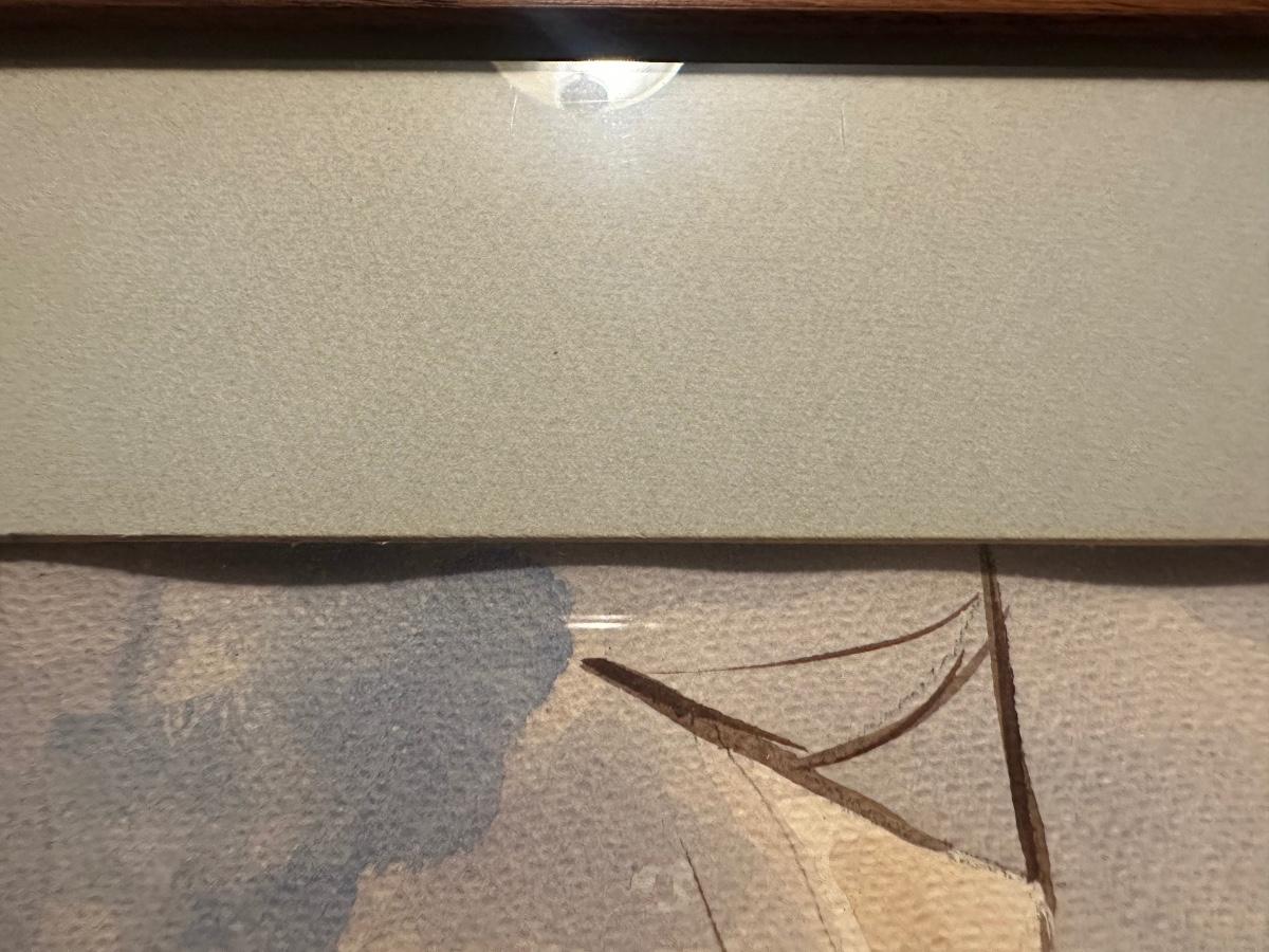 The top is slightly rippled on top and there are two marks that could be on the frame, pictured.