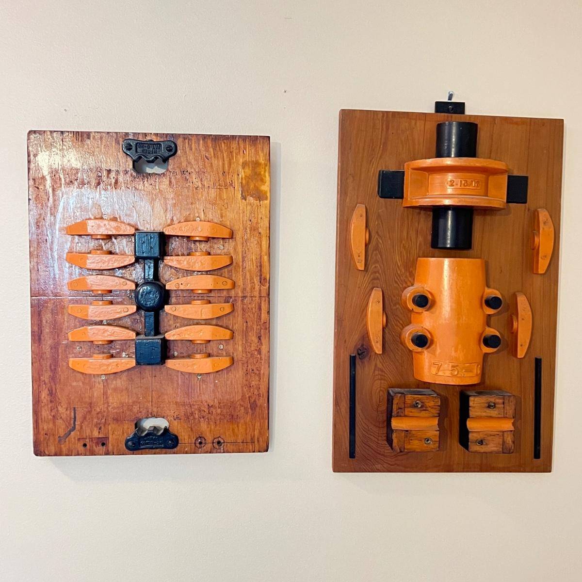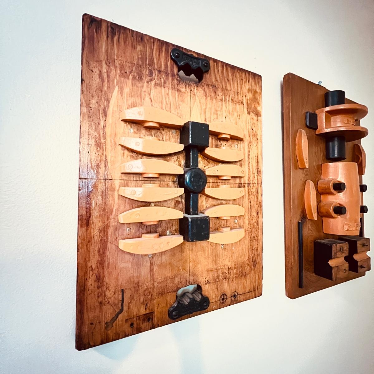 Pair of Vintage Original Industrial Artwork Hanging Sculptures