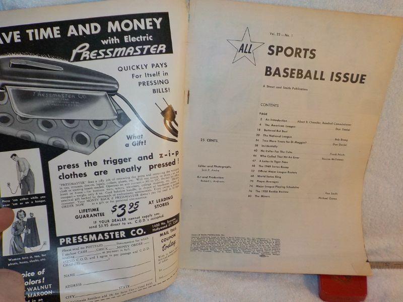 " Original Issue 1950 SPORTS BASEBALL/ Ted Williams & Joe DiMaggio Cover".