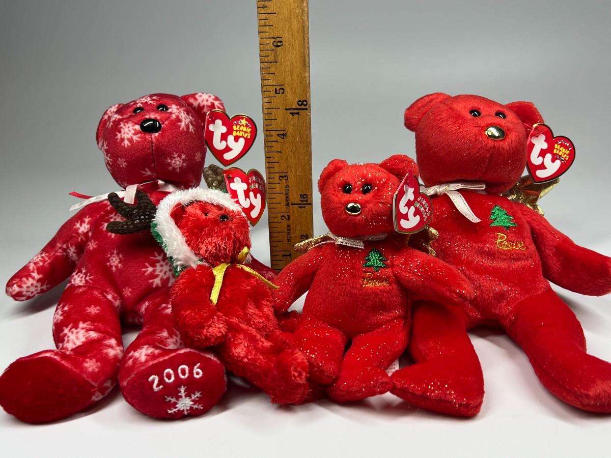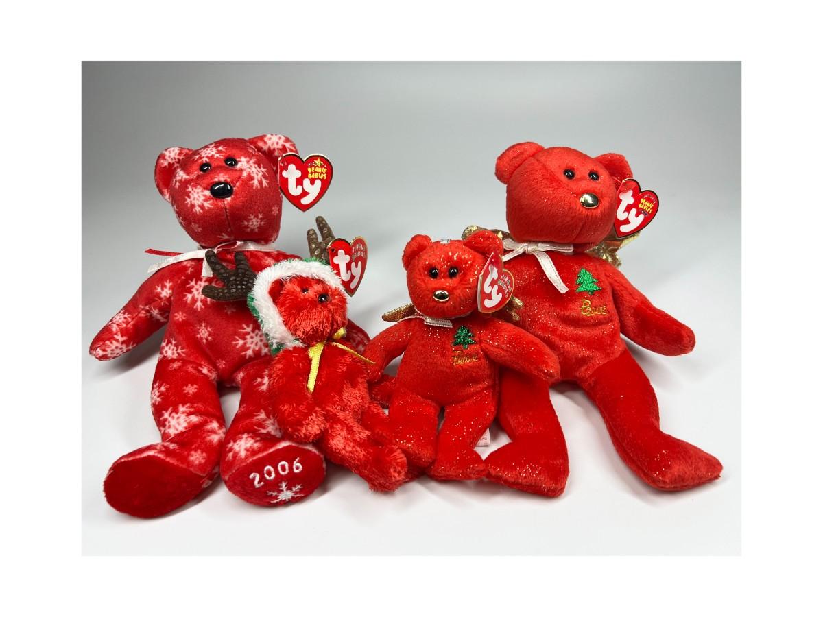 Original & Jingle Beanie Babies Ty Red Bear Christmas Stuffed Animals with Tags