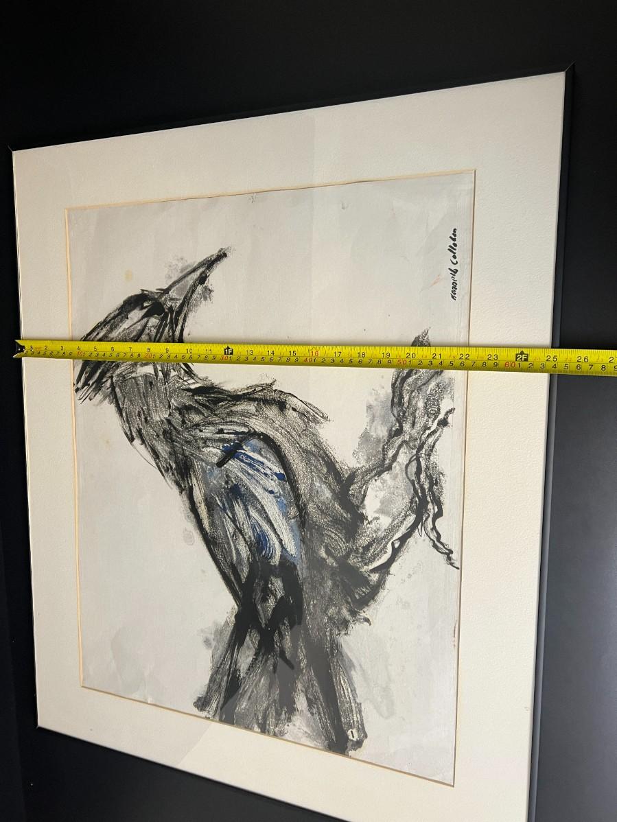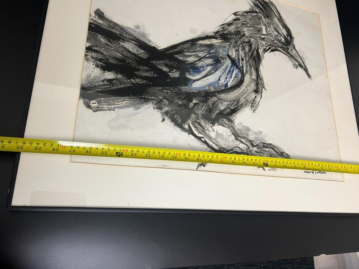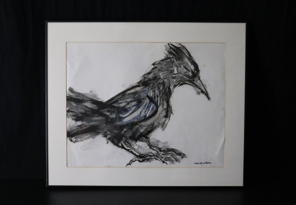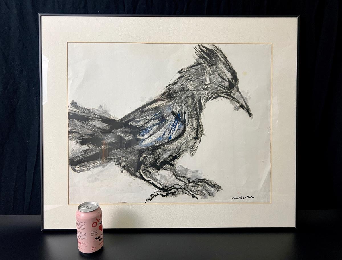 Original Kenneth Callahan (American, 1905 - 1986) Tempera Painting on Paper of a black bird with touches of blue (potentially a woodpecker). Signed by the artist. Painting measures approximately 19 x 24 inches (without frame). From the private collection of a close friend of the artist's. Good condition, with a little rippling in the paper, as shown. Please review images carefully.