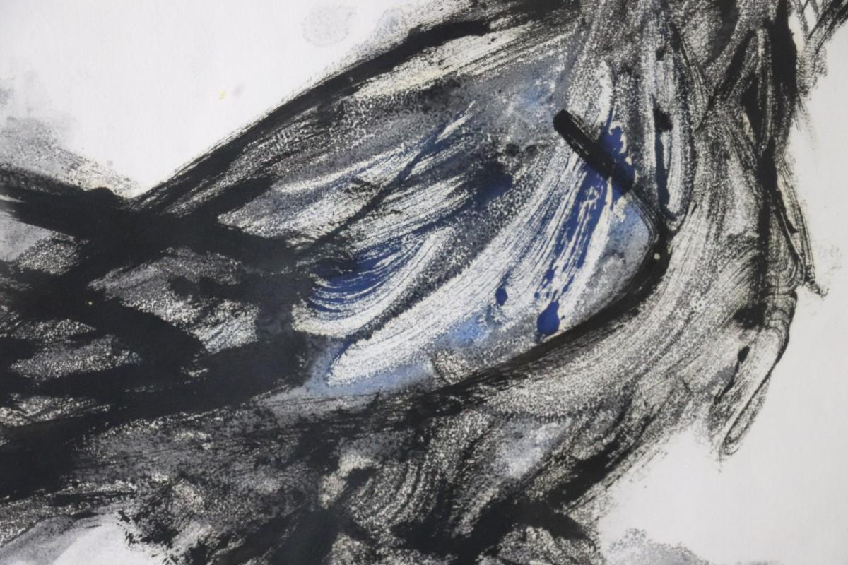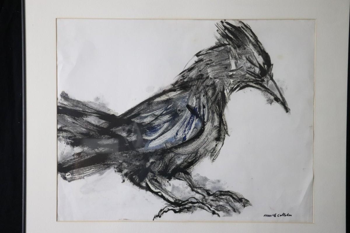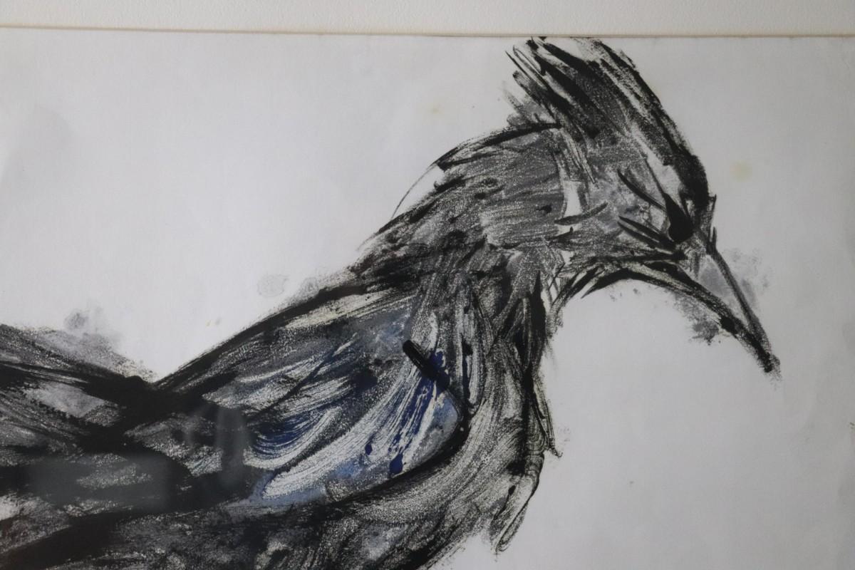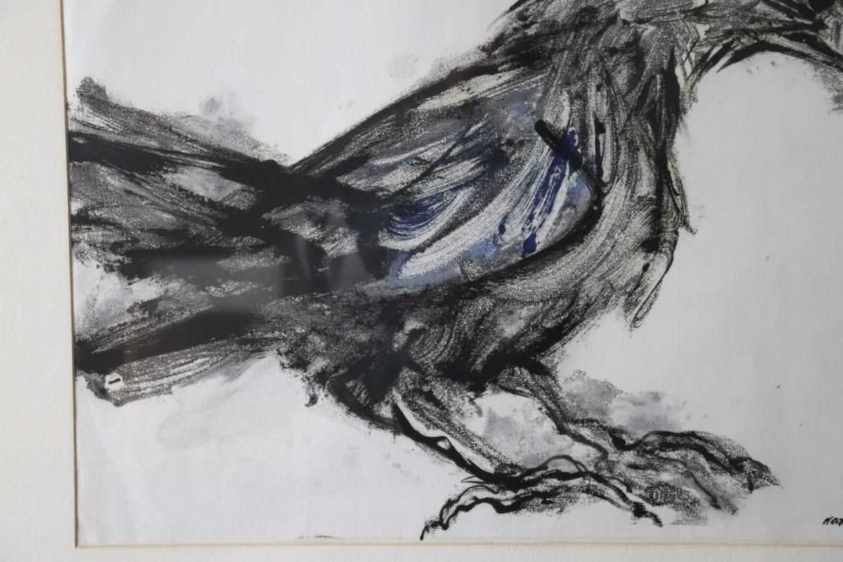 Original Kenneth Callahan (American, 1905 - 1986) Tempera Painting on Paper of a black bird with touches of blue (potentially a woodpecker). Signed by the artist. Painting measures approximately 19 x 24 inches (without frame). From the private collection of a close friend of the artist's. Good condition, with a little rippling in the paper, as shown. Please review images carefully.
