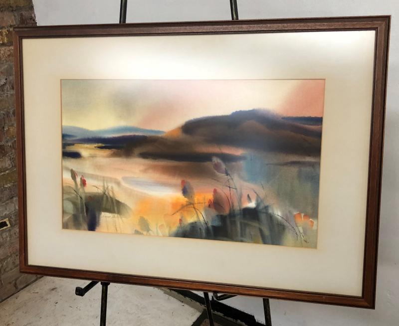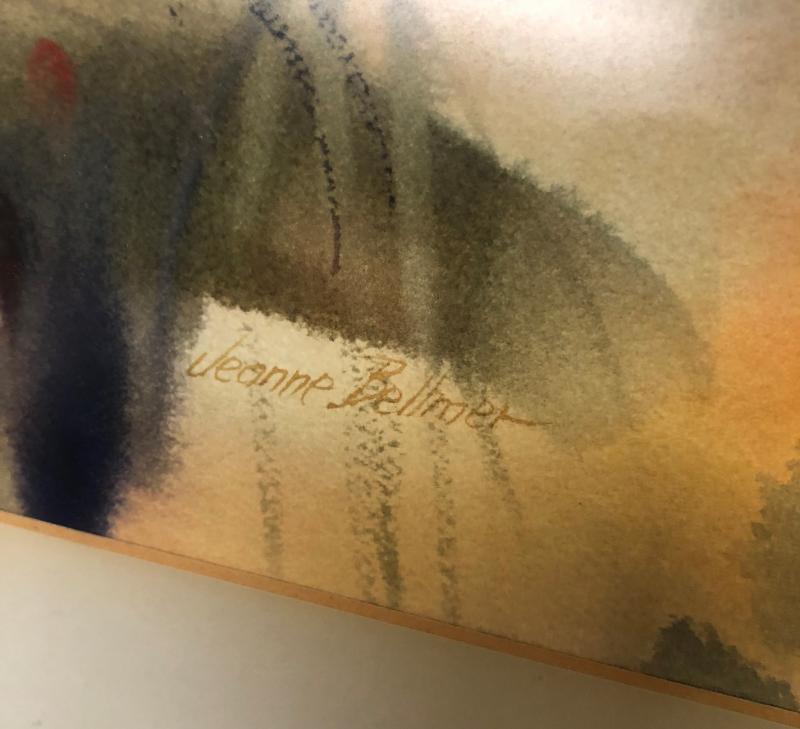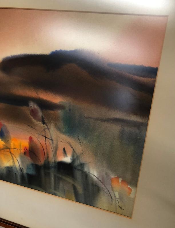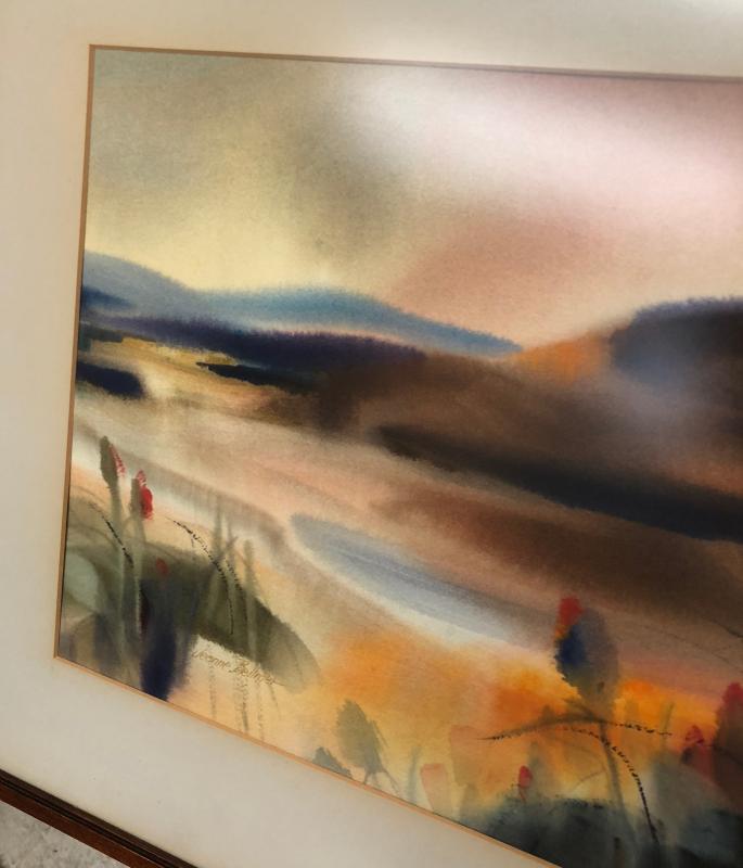 Here is an abstract watercolor landscape by artist Jeanne Bellmer...framed...29 x 21"..