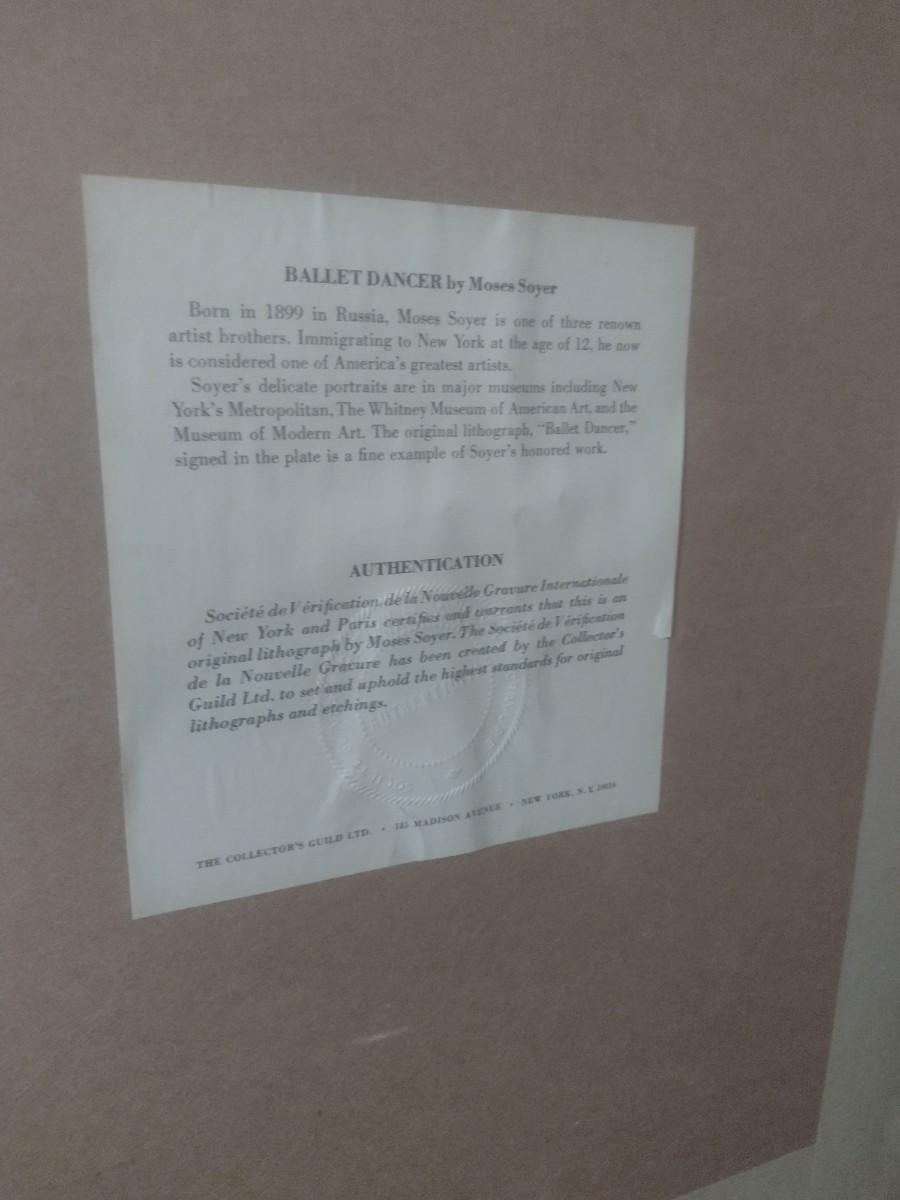 Original Lithograph by Moses Soyer 'Ballet Dance' with Authentication