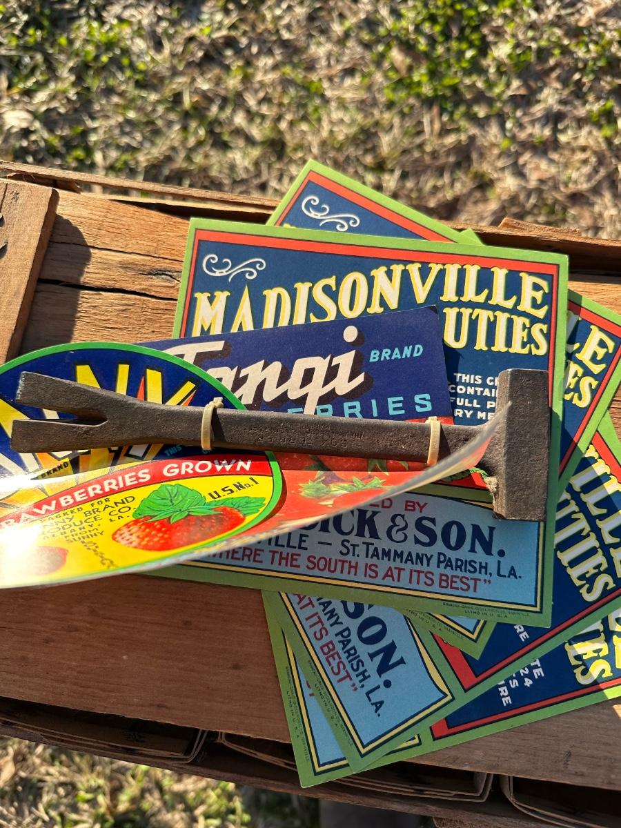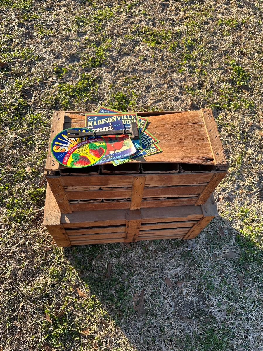 Original Louisiana Strawberry Crates w/ Labels & Crate Tool – Madisonville / Albany LA