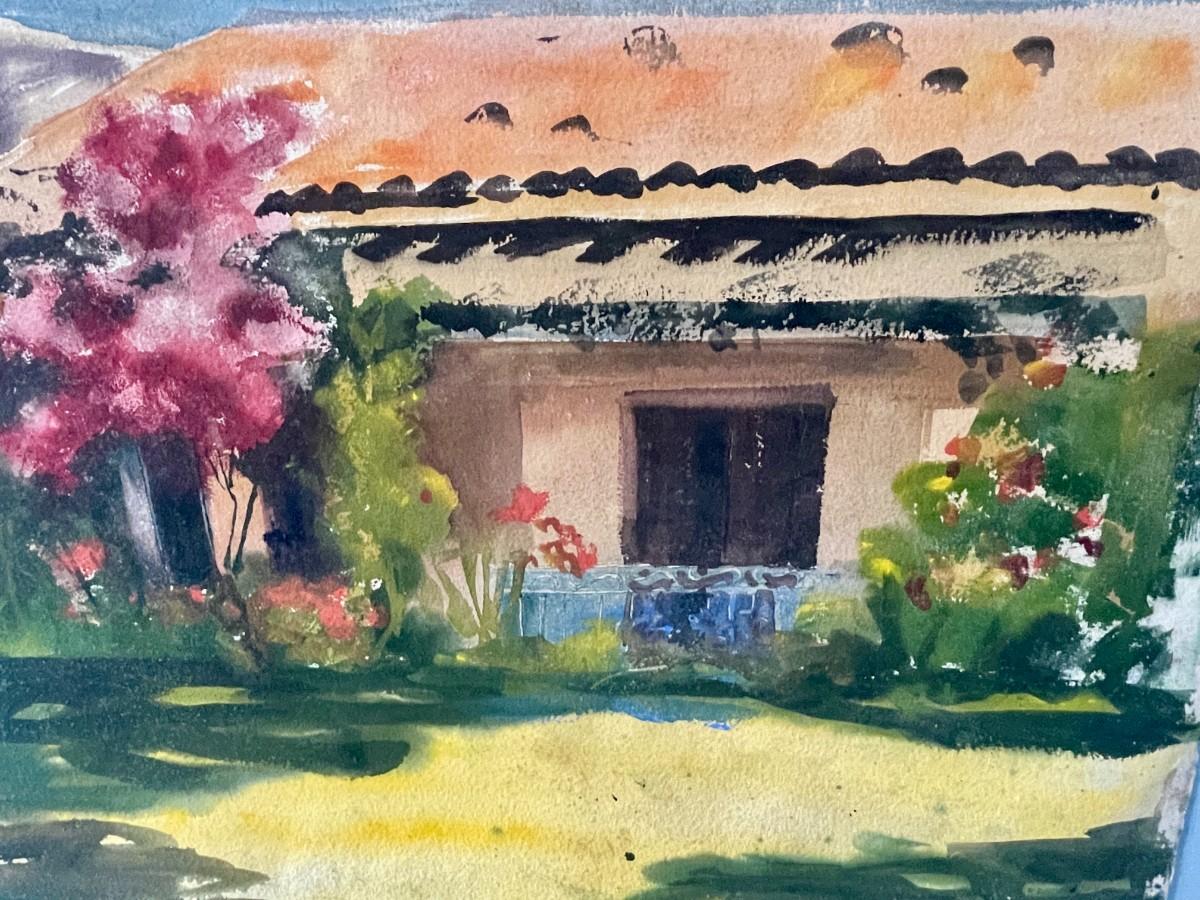 Original Merle Foshag rooster & landscape double-sided watercolor