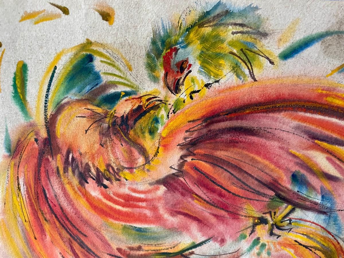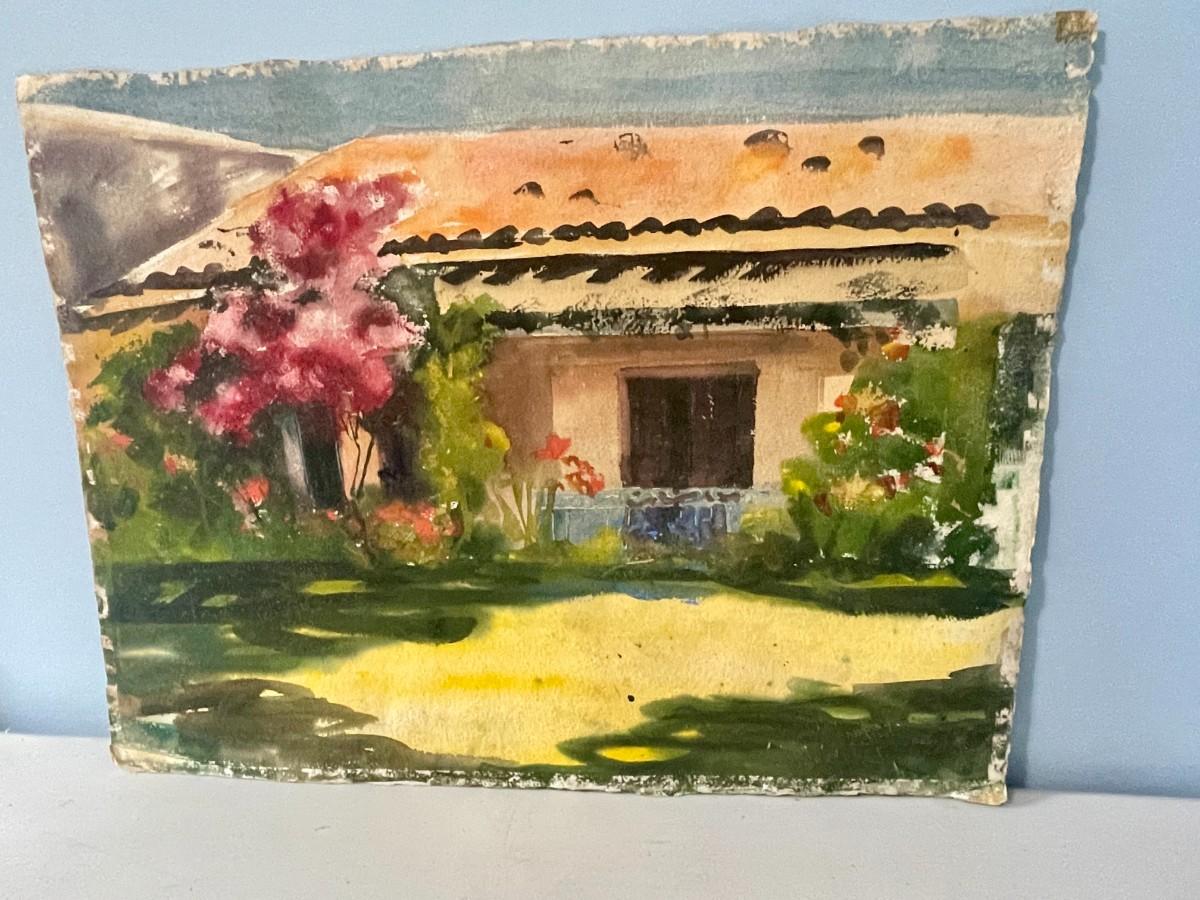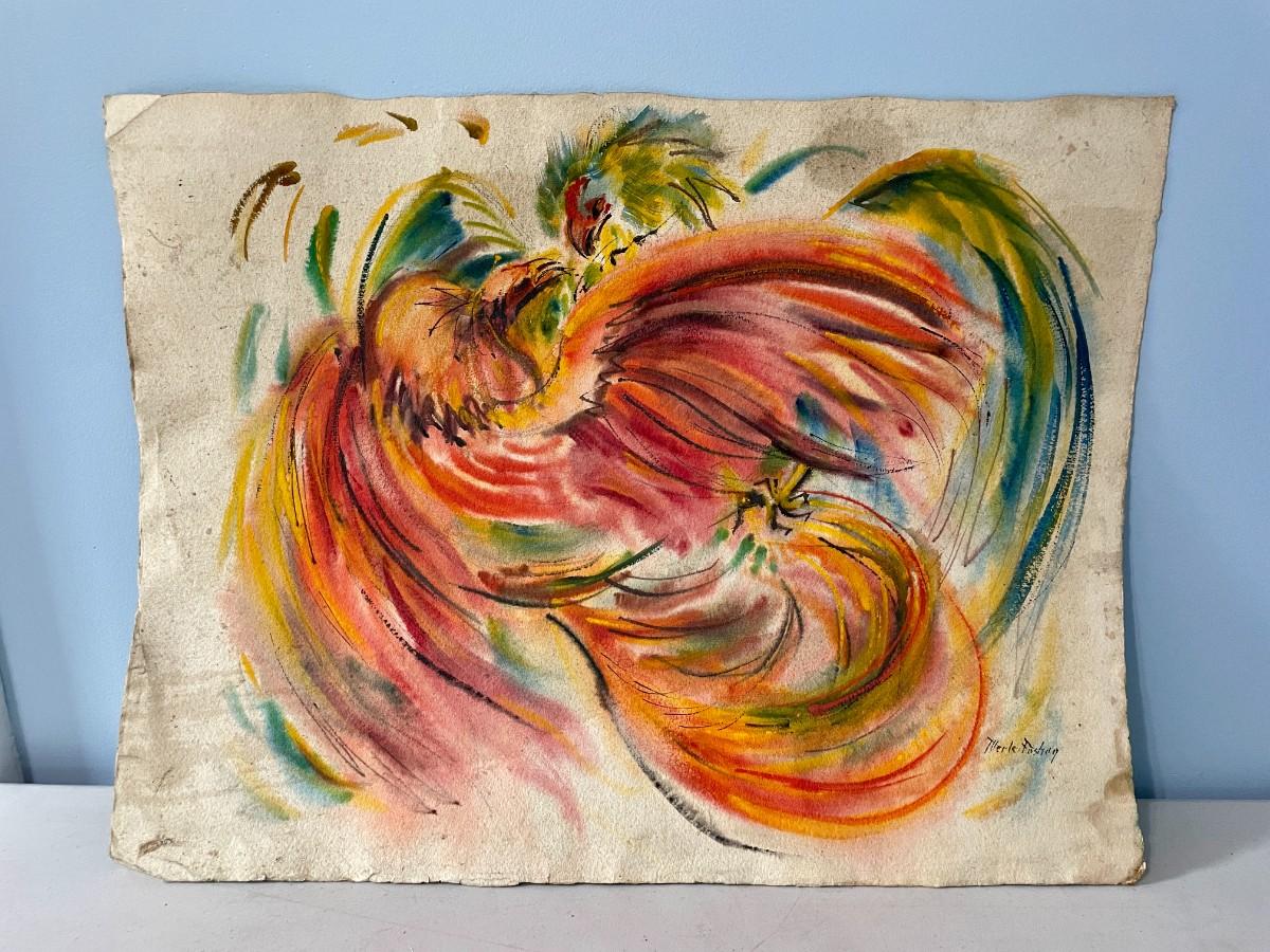 Original Merle Foshag rooster & landscape double-sided watercolor