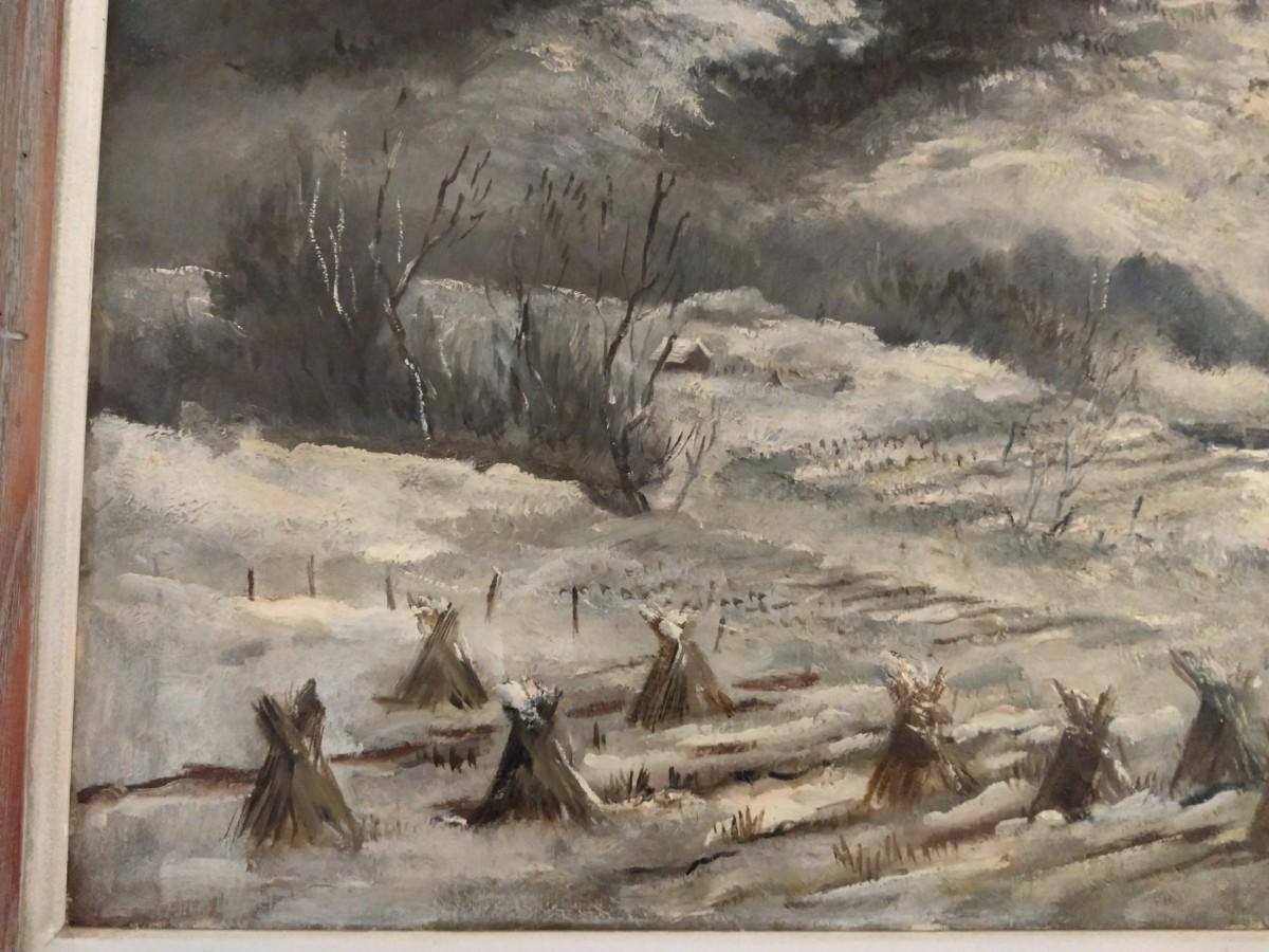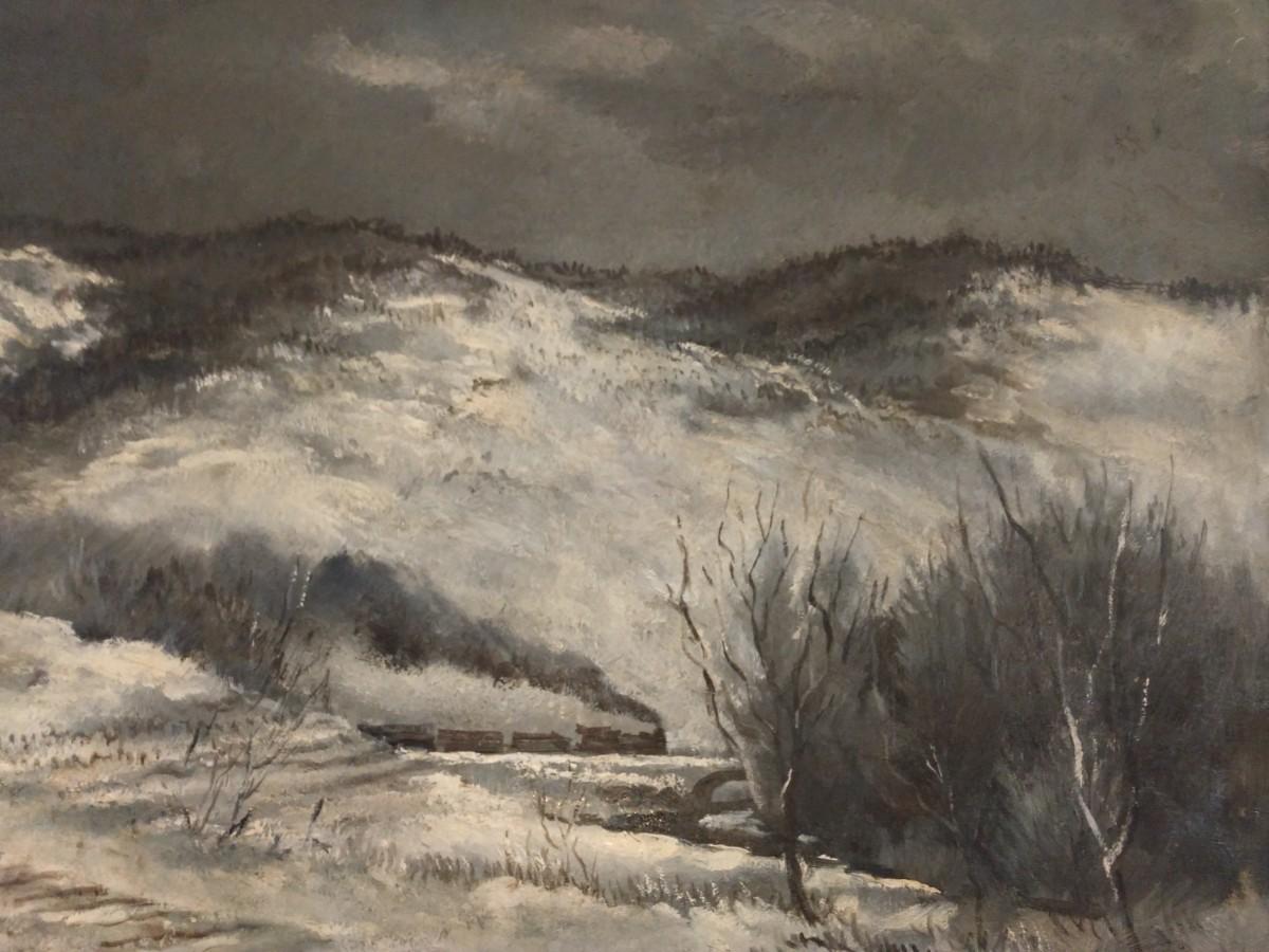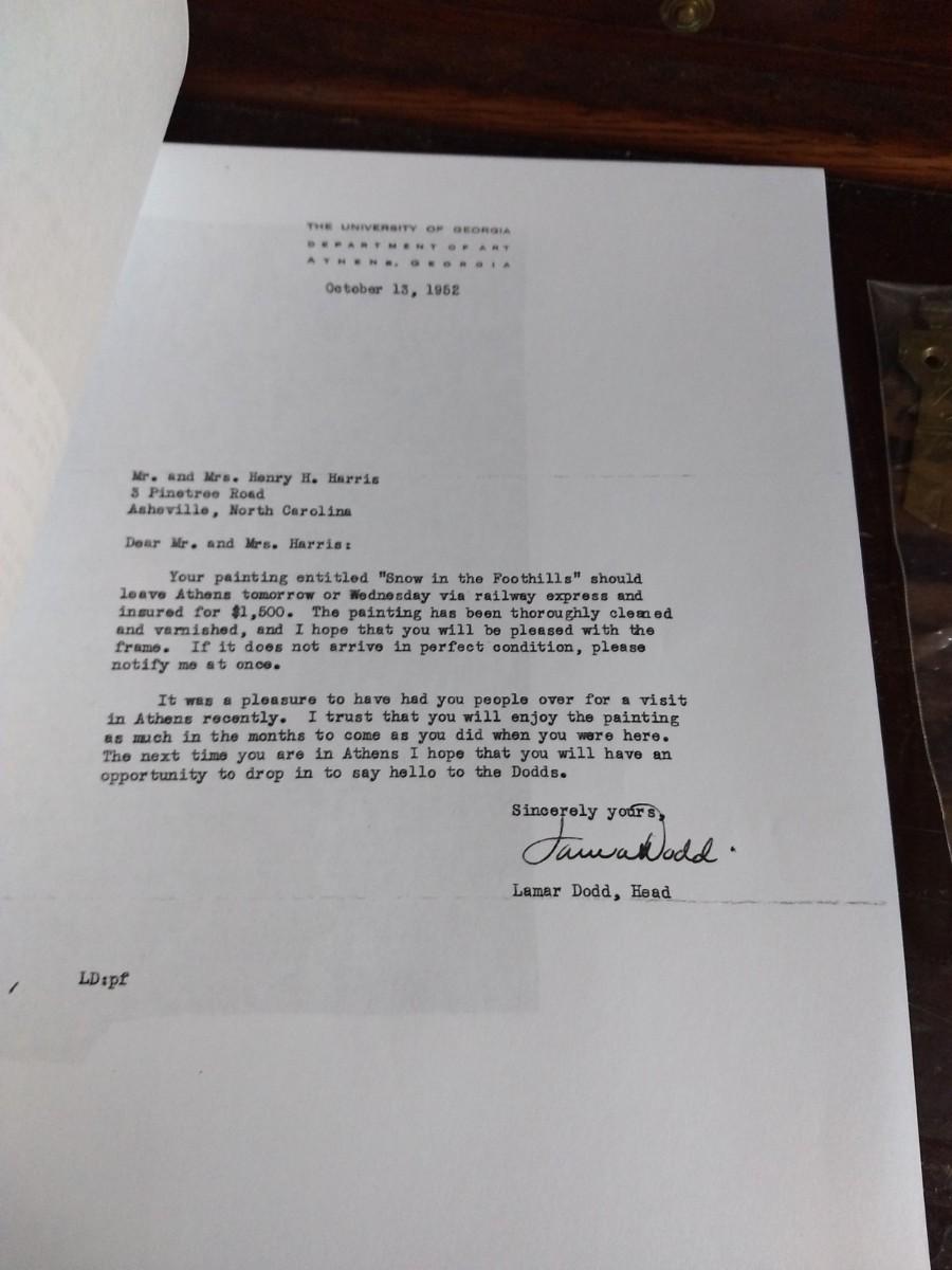 Original Oil on Canvas 'Snow in the Foothills' by Lamar Dodd Purchased Directly from the Artist in 1952 by the Seller. Copy of letter from the artist to the Harris family mentions appreciation for the purchase and visit to Athens to purchase the original art is provided in the gallery of photos.