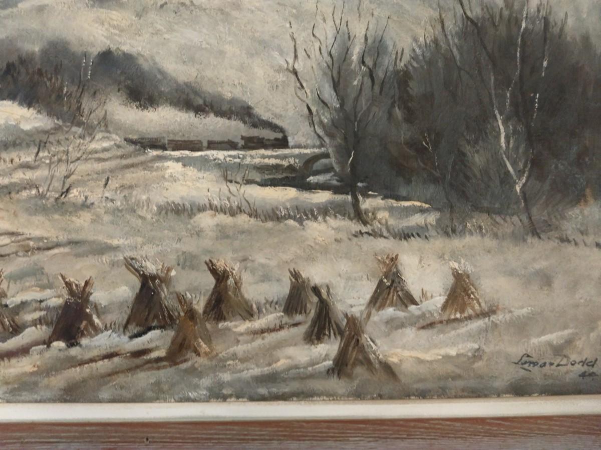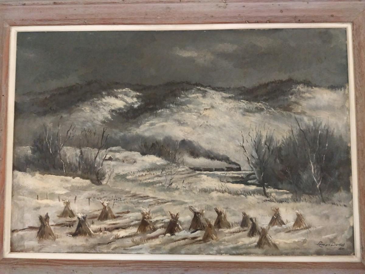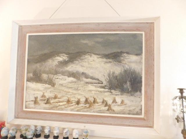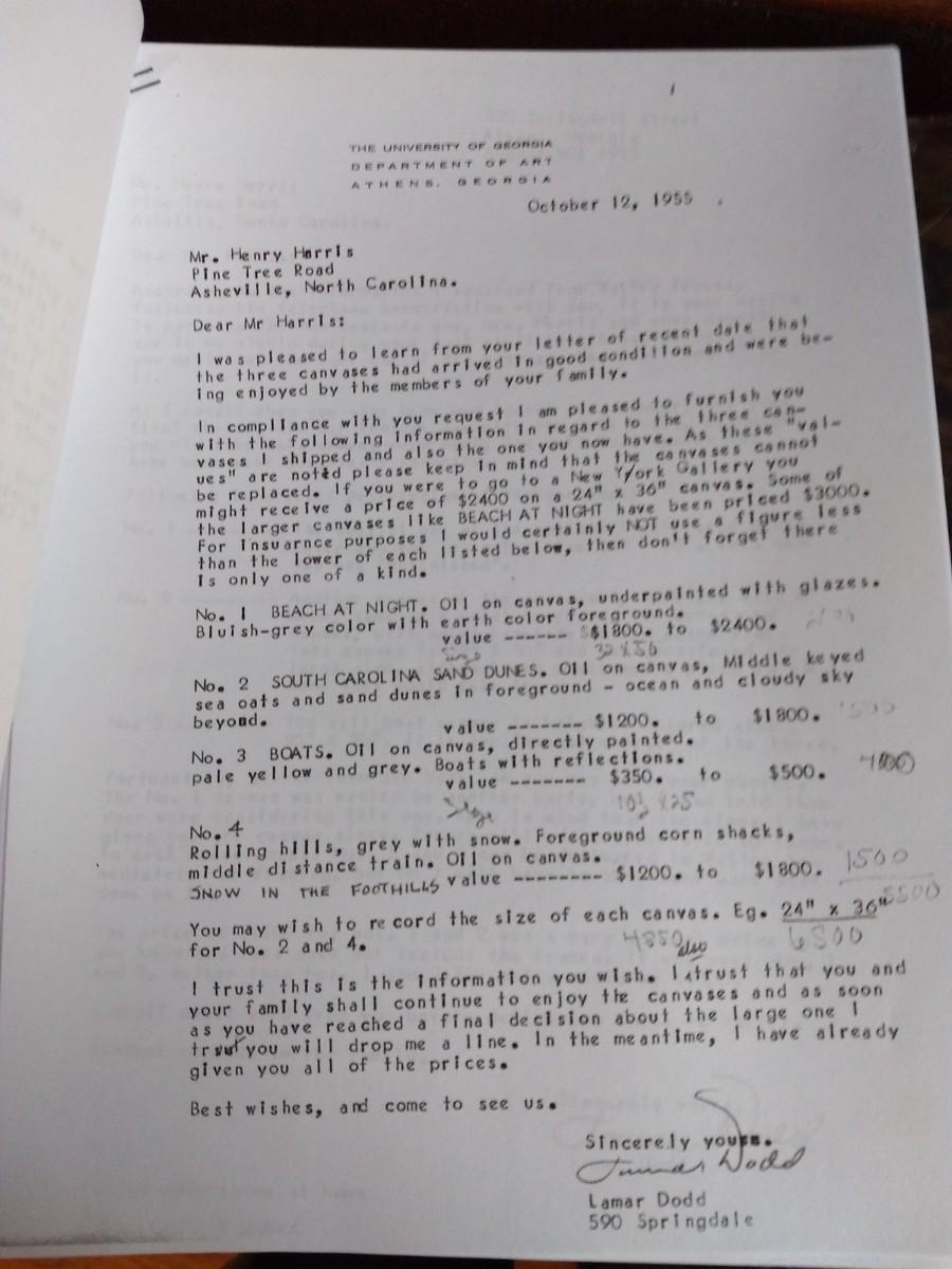 Original Oil on Canvas 'Snow in the Foothills' by Lamar Dodd Purchased Directly from the Artist in 1952 by the Seller. Copy of letter from the artist to the Harris family mentions appreciation for the purchase and visit to Athens to purchase the original art is provided in the gallery of photos.