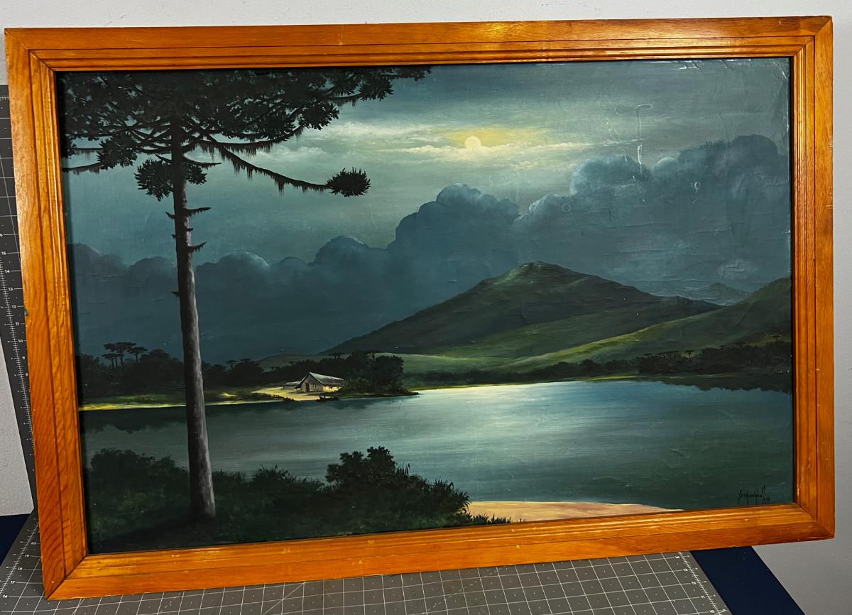 Original Oil Paint of the Moon Lake dated 1959 signed SCHUAWALOF F