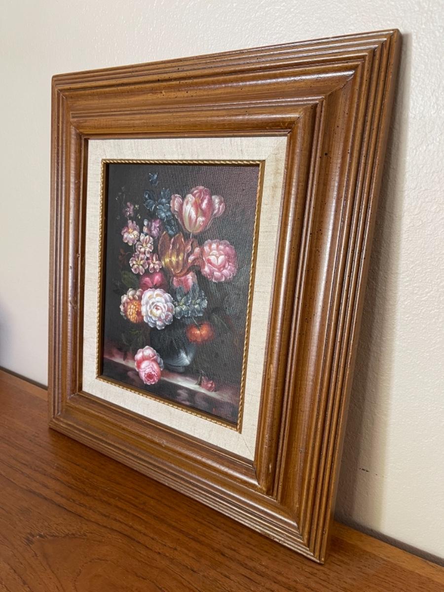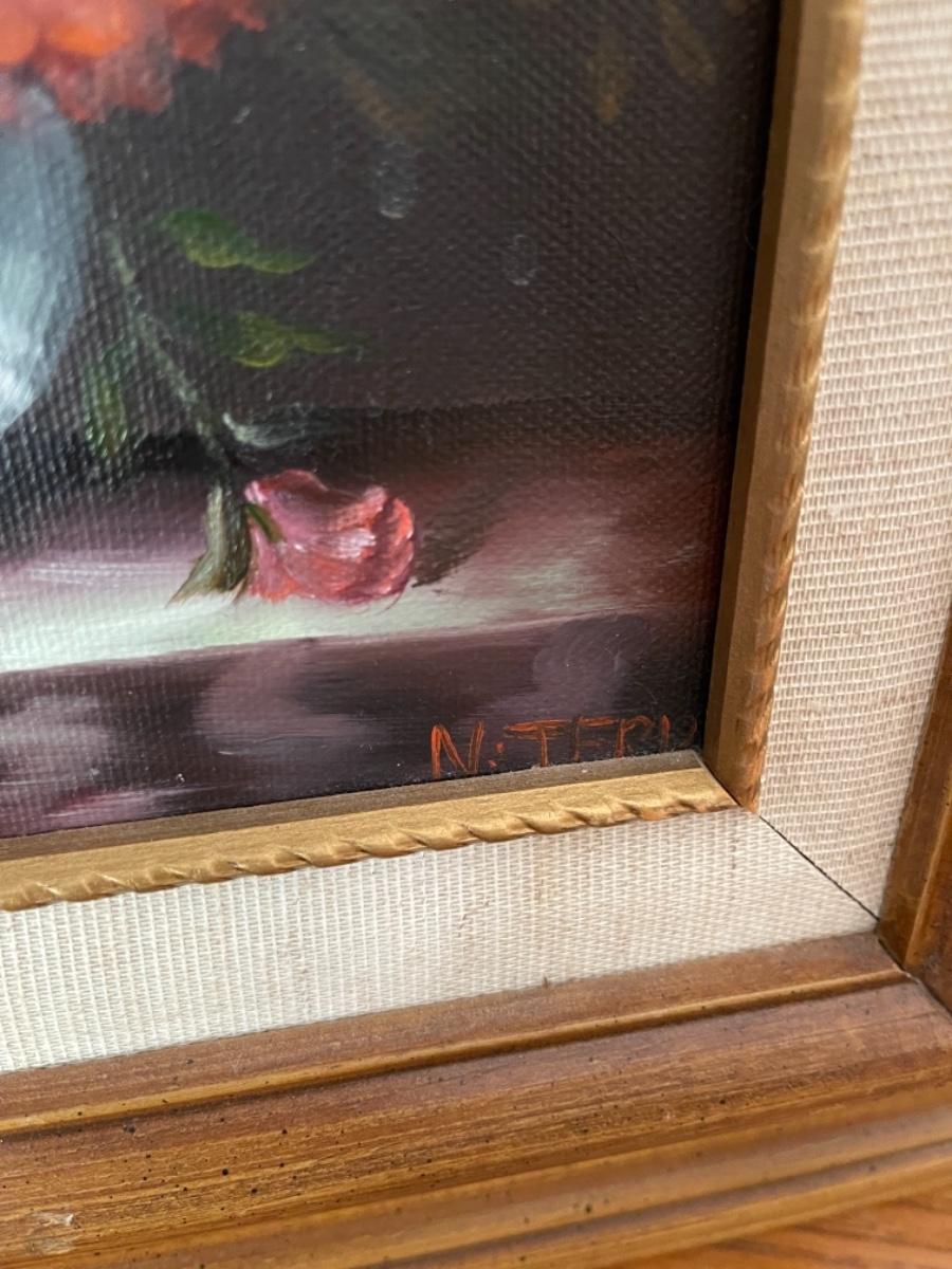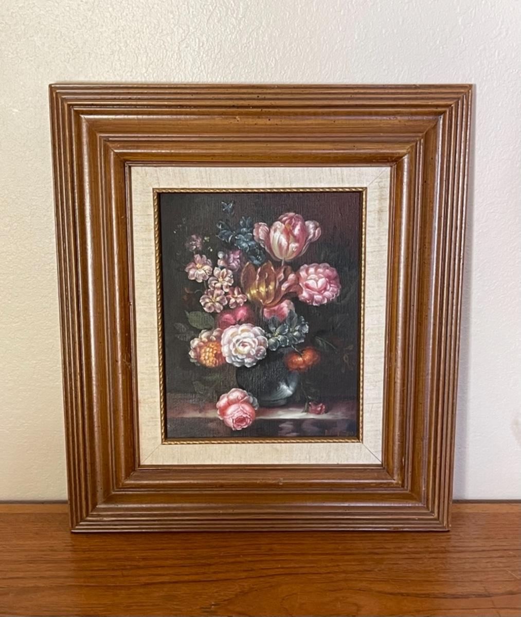 Vintage oil on canvas. Solid wood frame. Artist signed. Frame measures 15 1/4” x 17 1/2.” Shipping available.