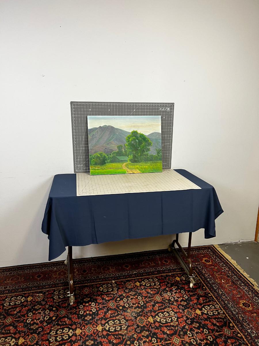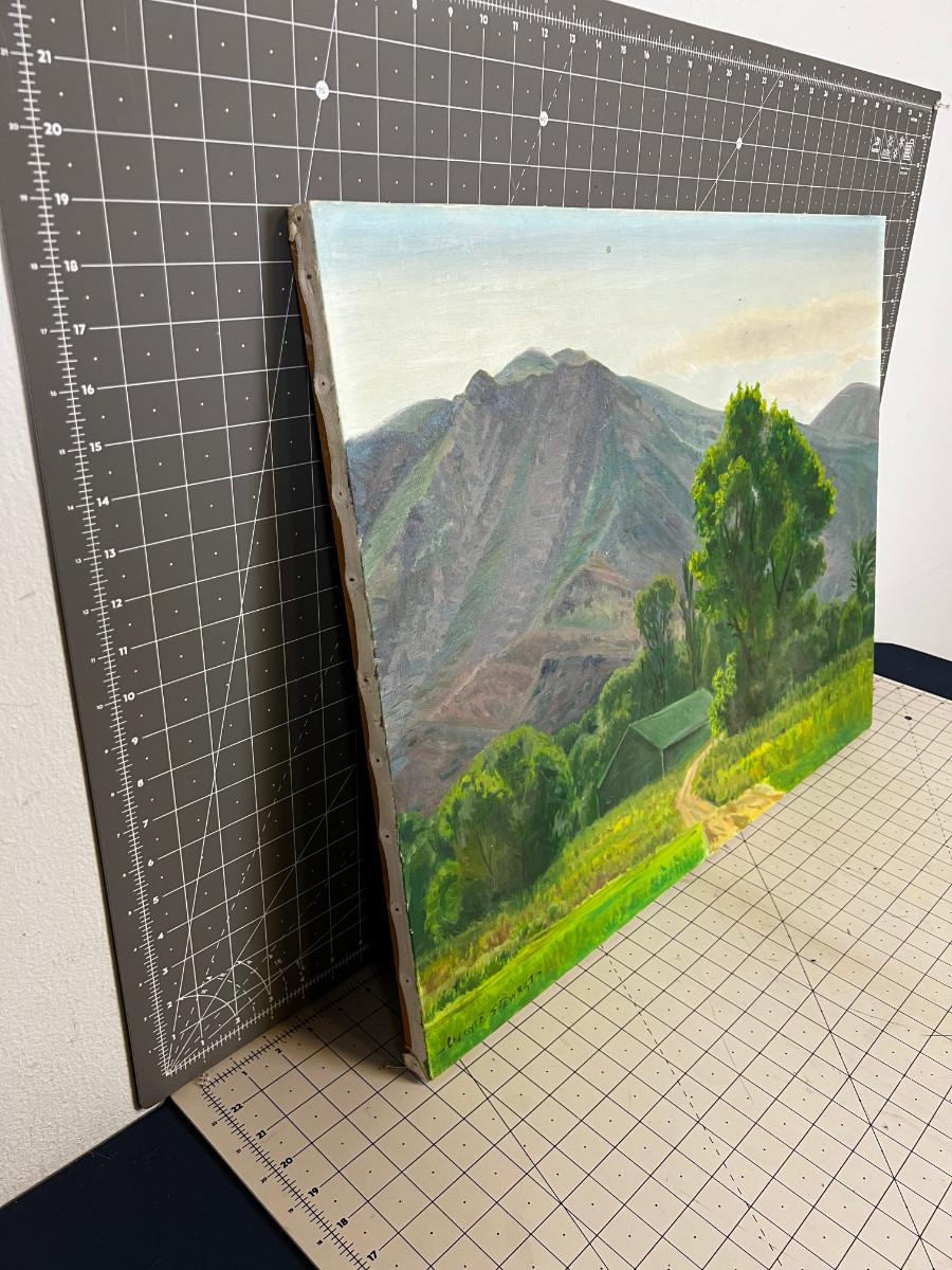 We have had this painted looked at by a couple of gallery's and we are confident it is an original LeConte Stewart painting consensus is most likely painted in the 1960's. there is what appears to be a repair on the right side of the canvas, see photos. If you would like to view this item in person please contact us and we can arrange it. A boxing fee will apply if the winning bidder requires shipping. This painting does have a reserve but it is much lower than the pre auction estimate of $5500.