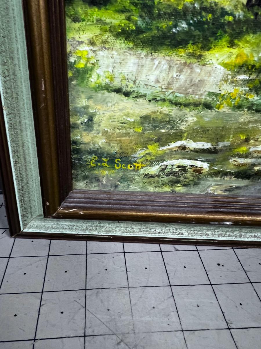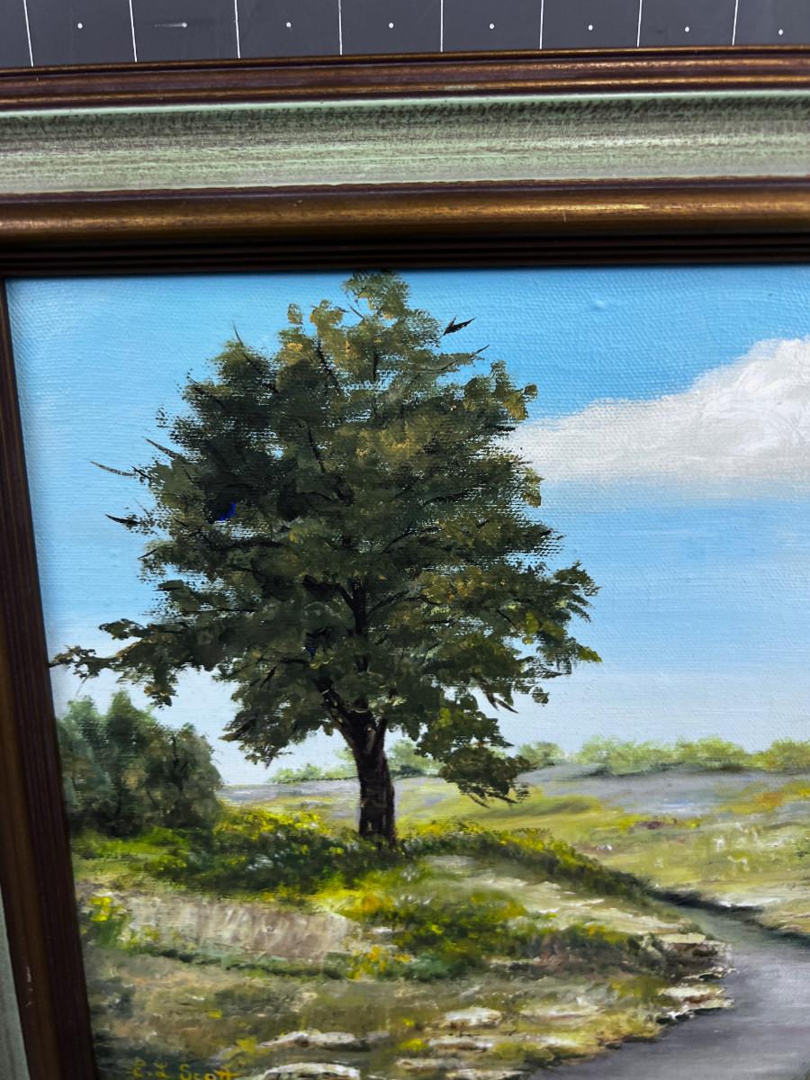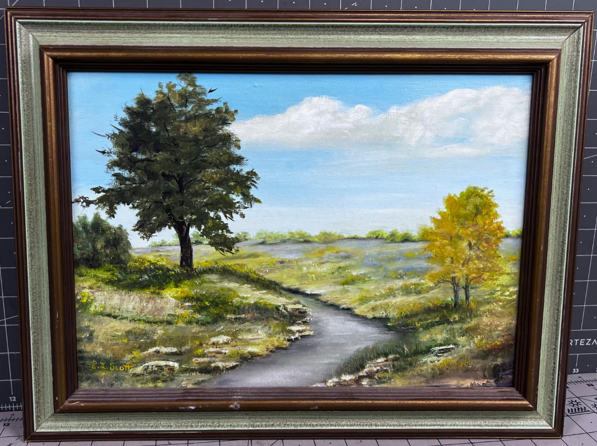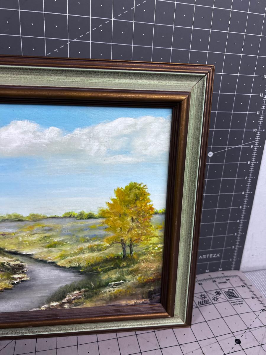 Framed 10 x 14" Lovely Yellow Green with Blue Sky & Stream