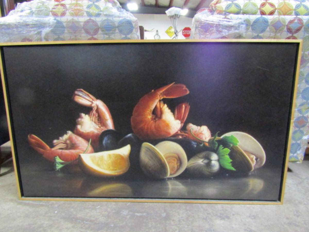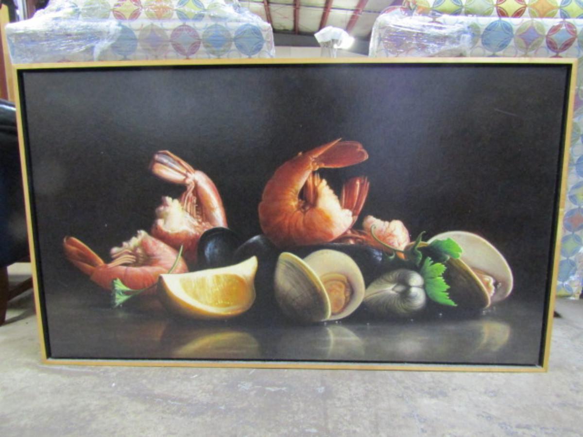 Original Oil Painting on Canvas by James Del Grosso- Ocean's Bounty (1991). Approximate Framed Dimensions: 58" x 33 1/2" x 2 3/8". Third party shipping only available i.e. UPS Store, Frontier, etc. Auction house will not personally pack and ship this item.