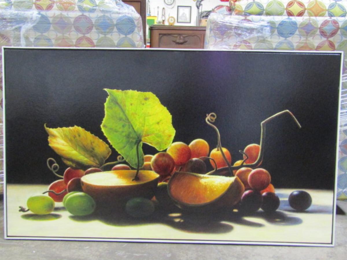 Original Oil Painting on Canvas by James Del Grosso- Grapes and Orange (1993). Approximate Framed Dimensions: 57" x 33" x 1 1/2". Third party shipping only available i.e. UPS Store, Frontier, etc. Auction house will not personally pack and ship this item.