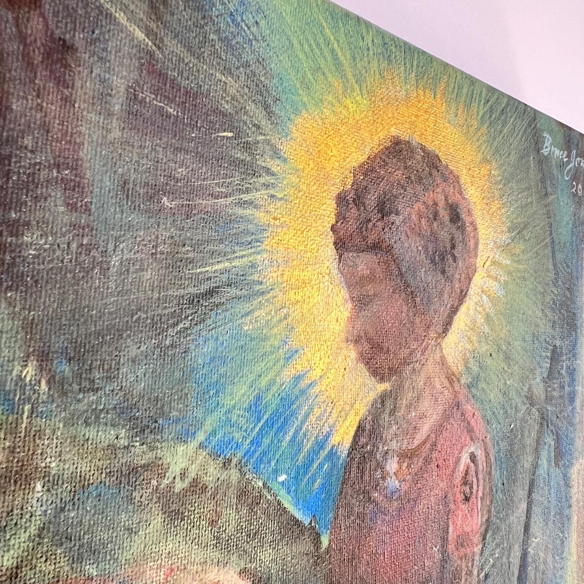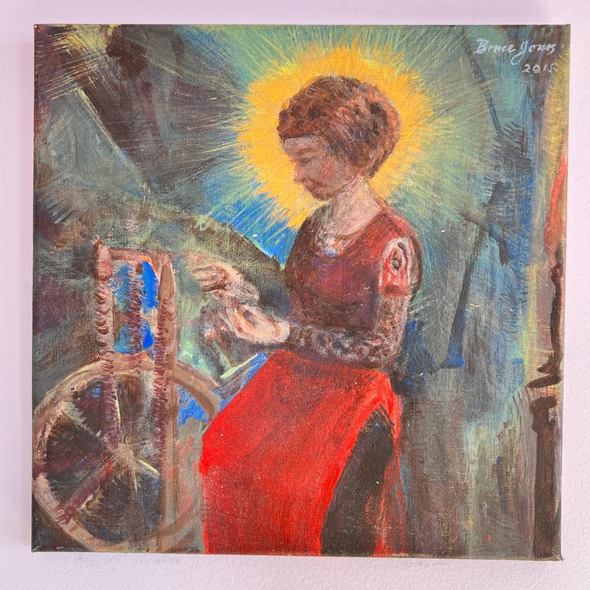 Signed Bruce Jones - original oil painting entitled "St. Elizabeth" influenced by a painting by Marianne Stokes. 12'x12'