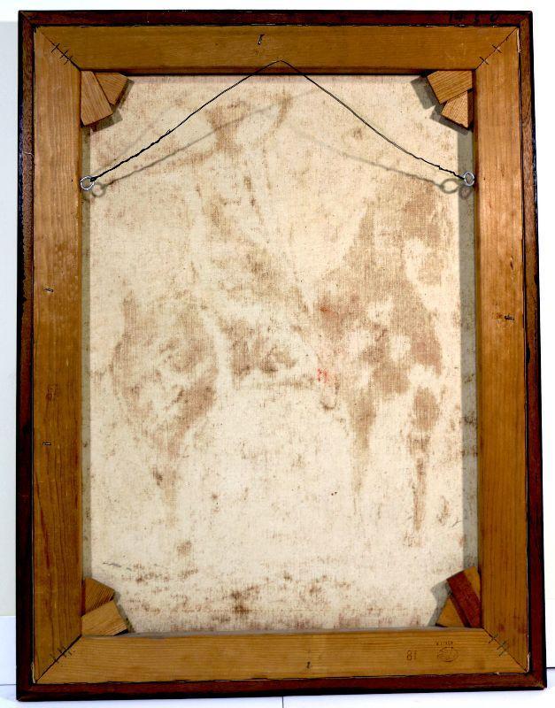 Mid-century era painting - oil on canvas featuring Red Horse or Horse and Rider after Marino Marini, Signed at lower left corner, artist name not readable, amazing abstract piece after famous Italian painter. Approximate dimensions: painting - 18" x 24", frame - 19" x 25".