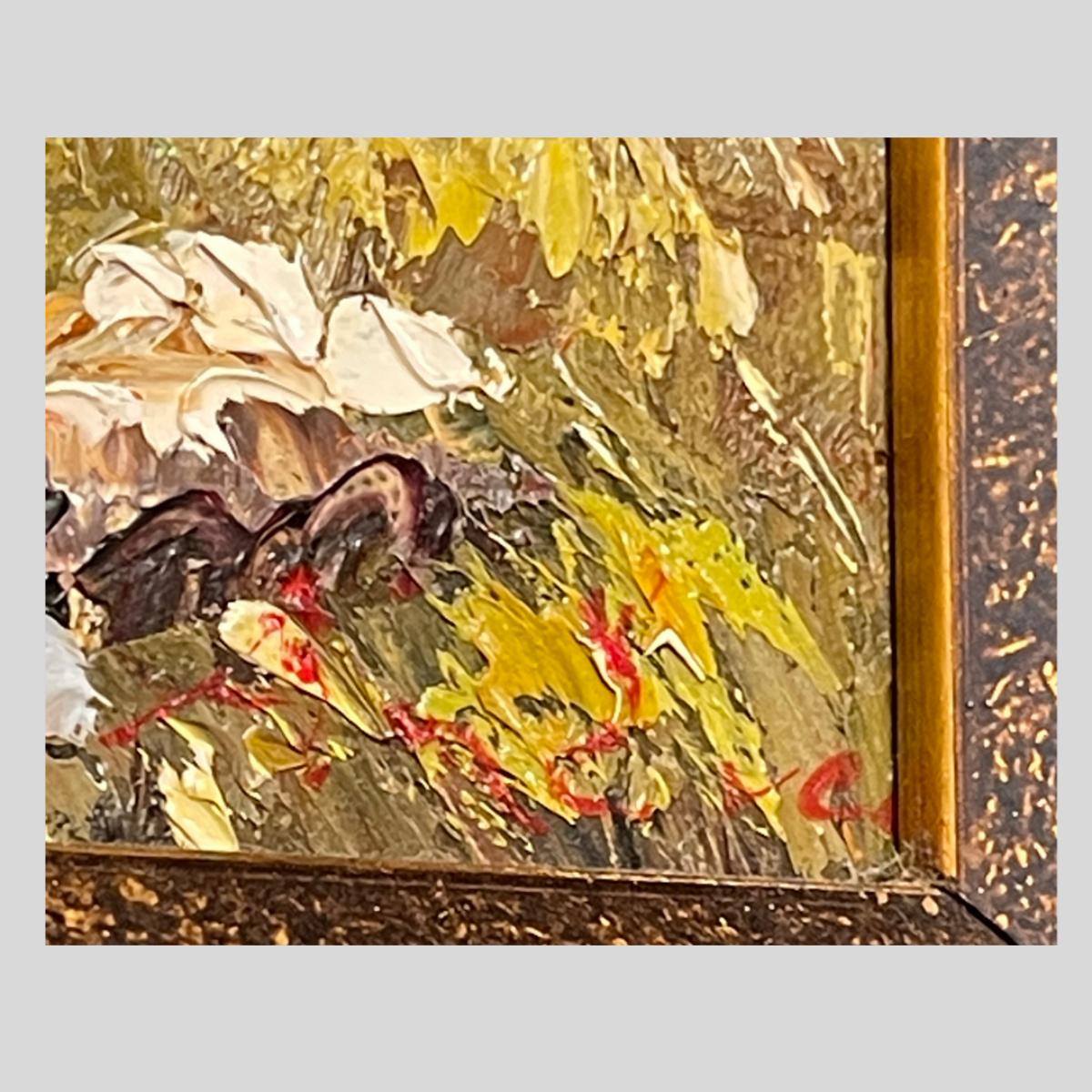 This is a gorgeous original oil painting. It is professionally framed and signed by Andrea. Opening is 9 x 7 and frame is 18 x 16