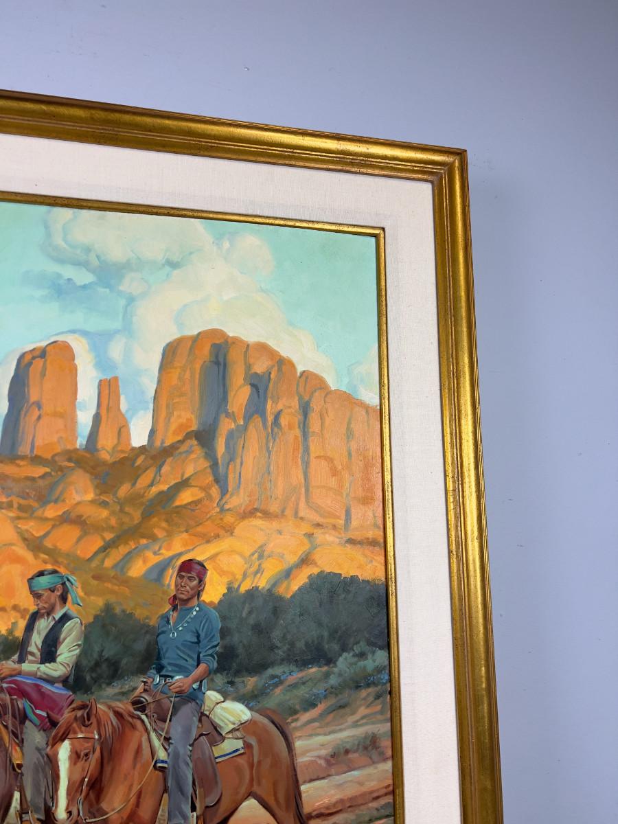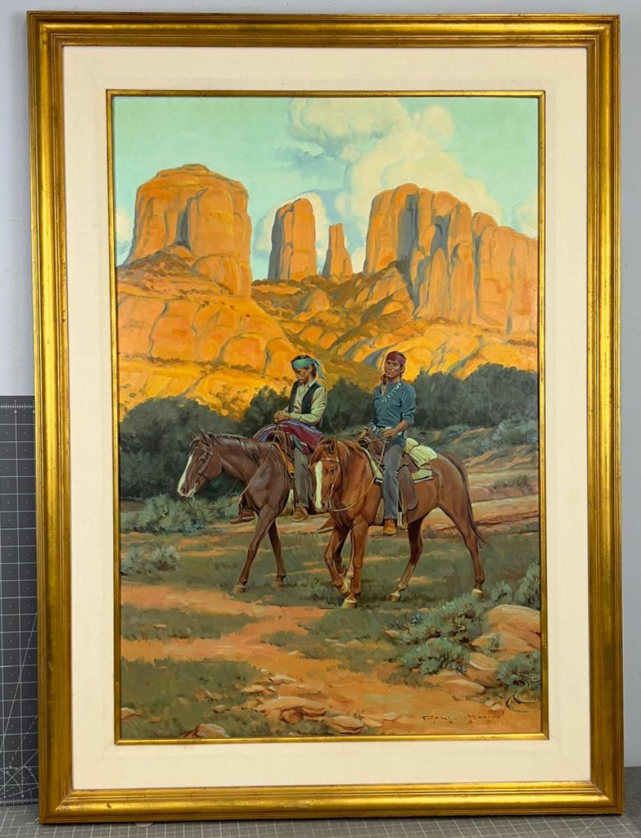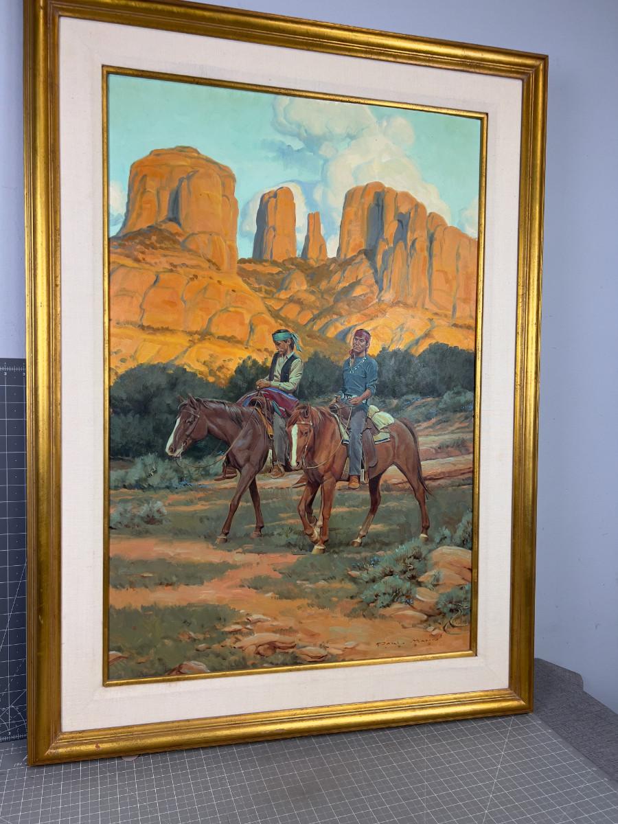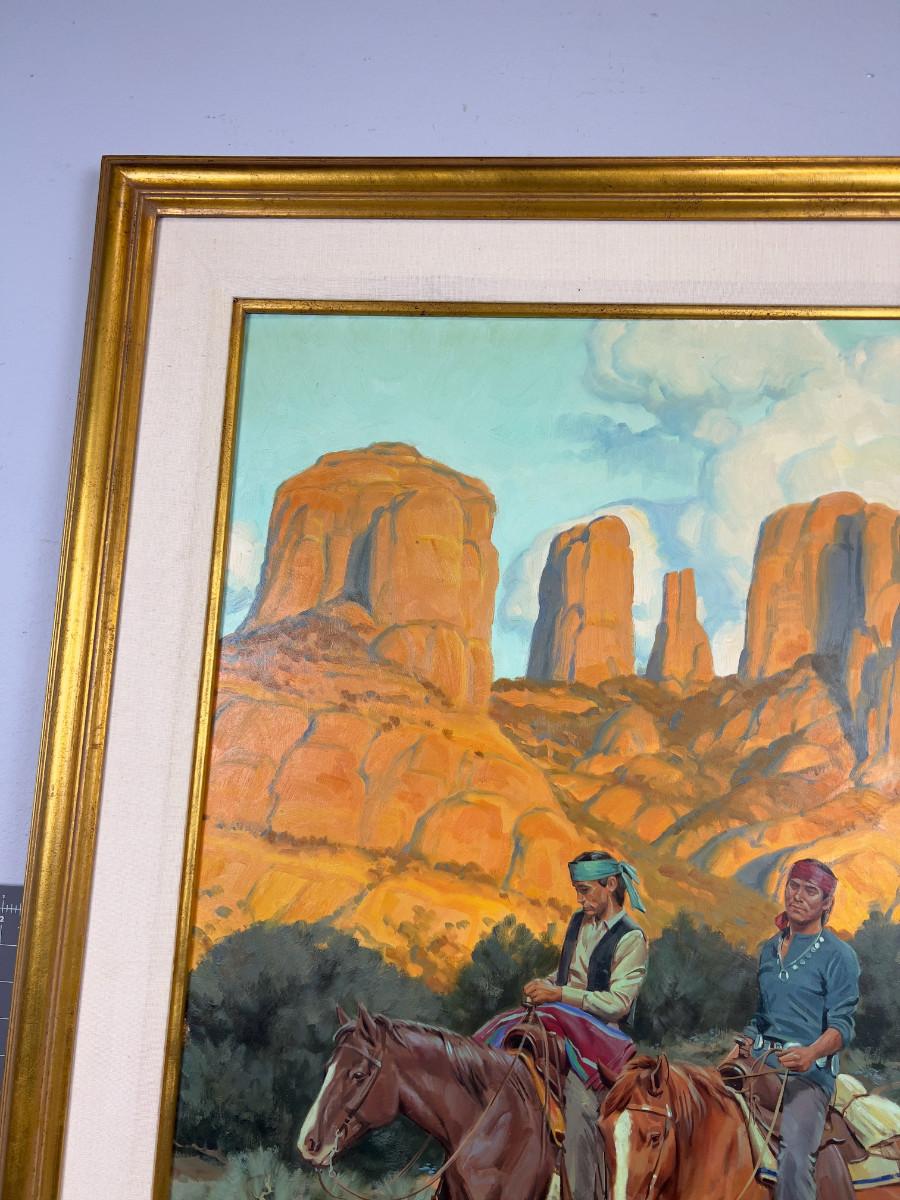 Original Oil Painting Southern Utah Navajo's on Horseback by Paul Mann. Oil on board 24" by 36". Excellent condition nicely framed. Check out the artists website https://www.paulmannartist.com/